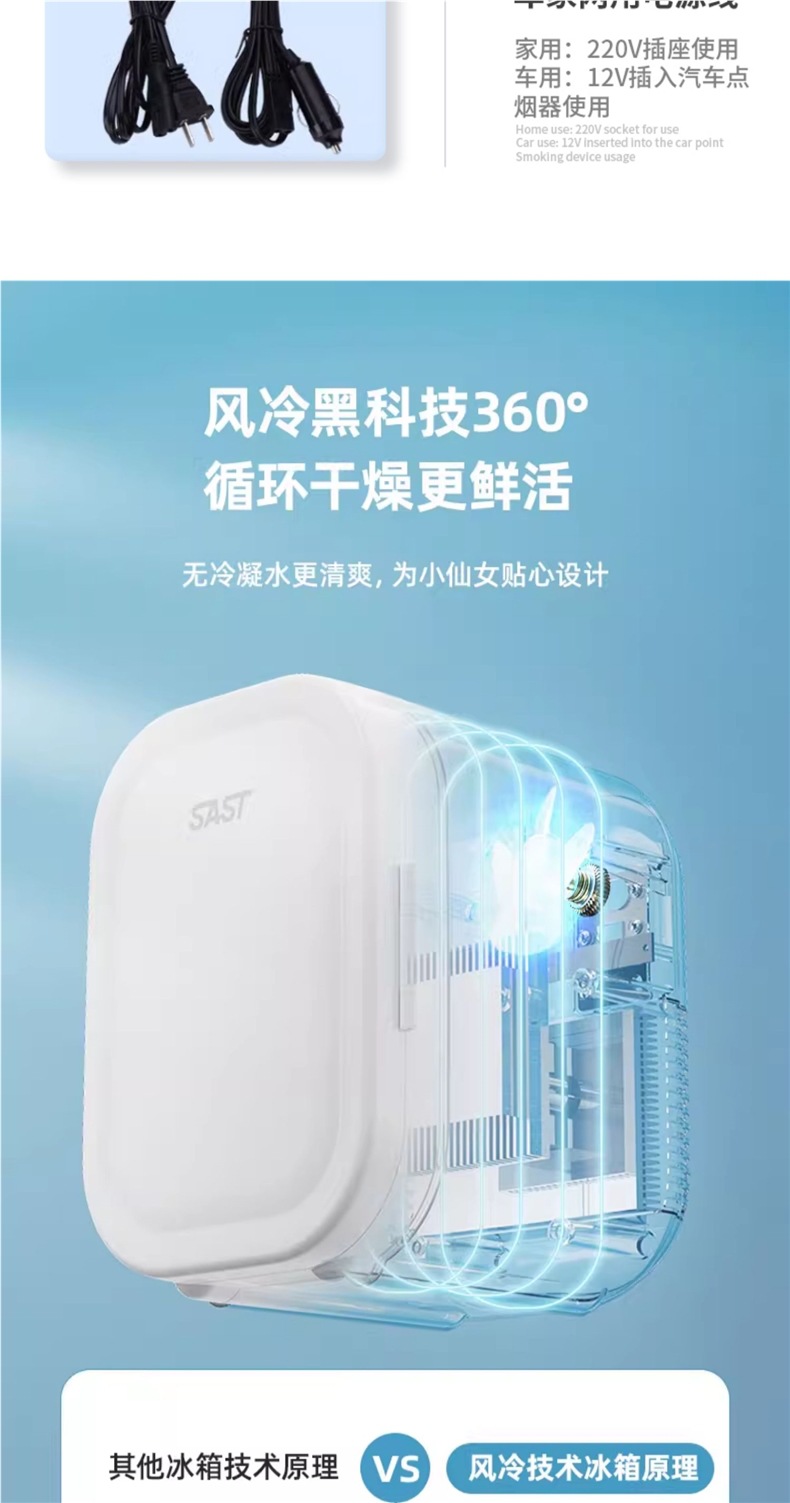 SAST 자동차 미니 냉장고 12v 자동차 소형 모유 저장 8L 기숙사 단일 냉동고스토어 가기
