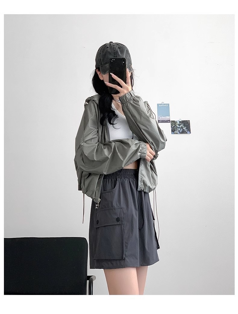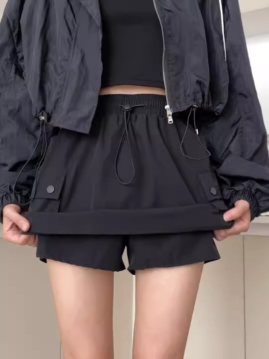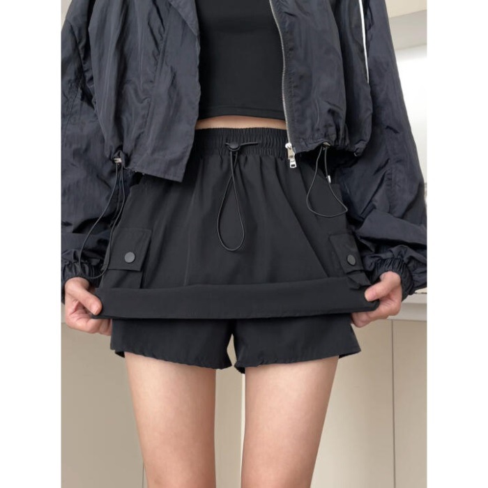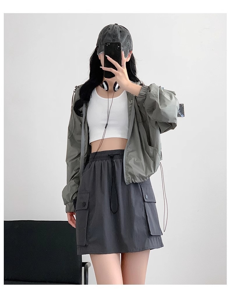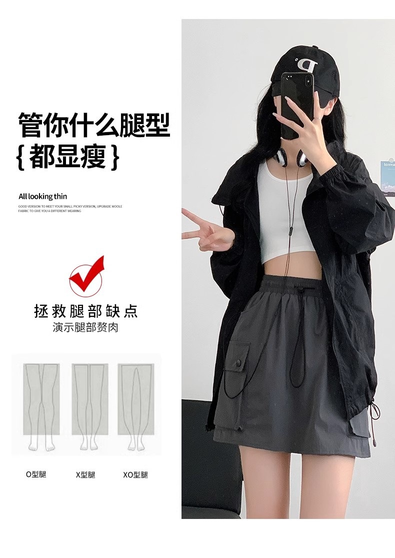 재고 세대 헤어 탄성 허리 드로 스트링 스커트 짧은 치마 틈새 A 라인 스커트 슬림 그레이 스커트 작업 원피스 패션스토어 가기
