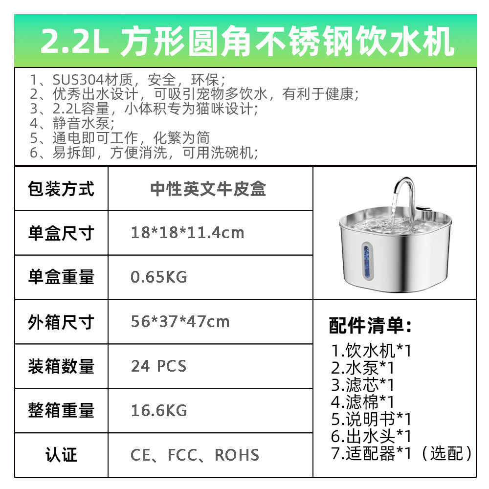 2.2L 애완동물 급수기 스테인리스 스틸 해외 직구 고양이 급수기 흐르는 물 가정용 급수기 아마존 인기 상품