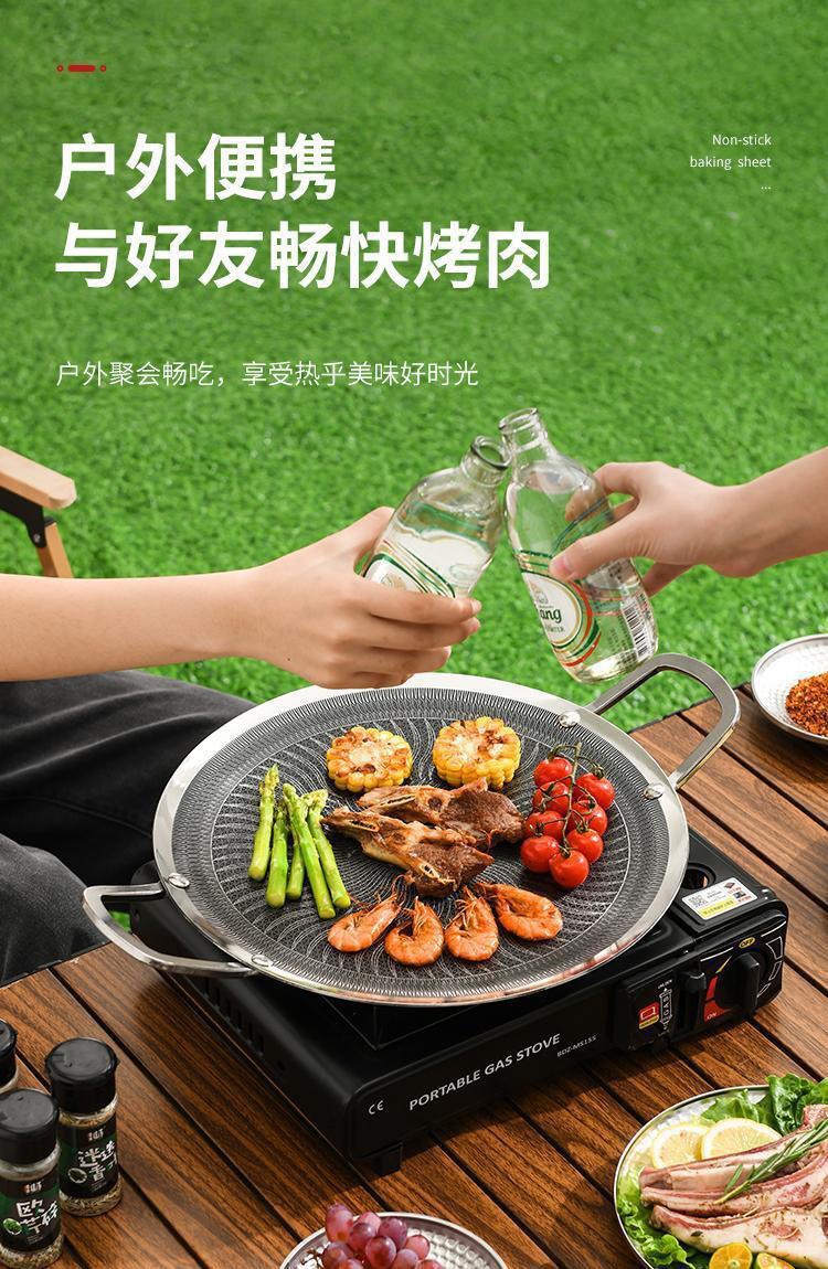 라운드 마이크로나이트 바베큐 플레이트 야외 캠핑 휴대용 바베큐 플레이트 한국식 붙지 않는 스테이크 철판 바베큐 플레이트스토어 가기