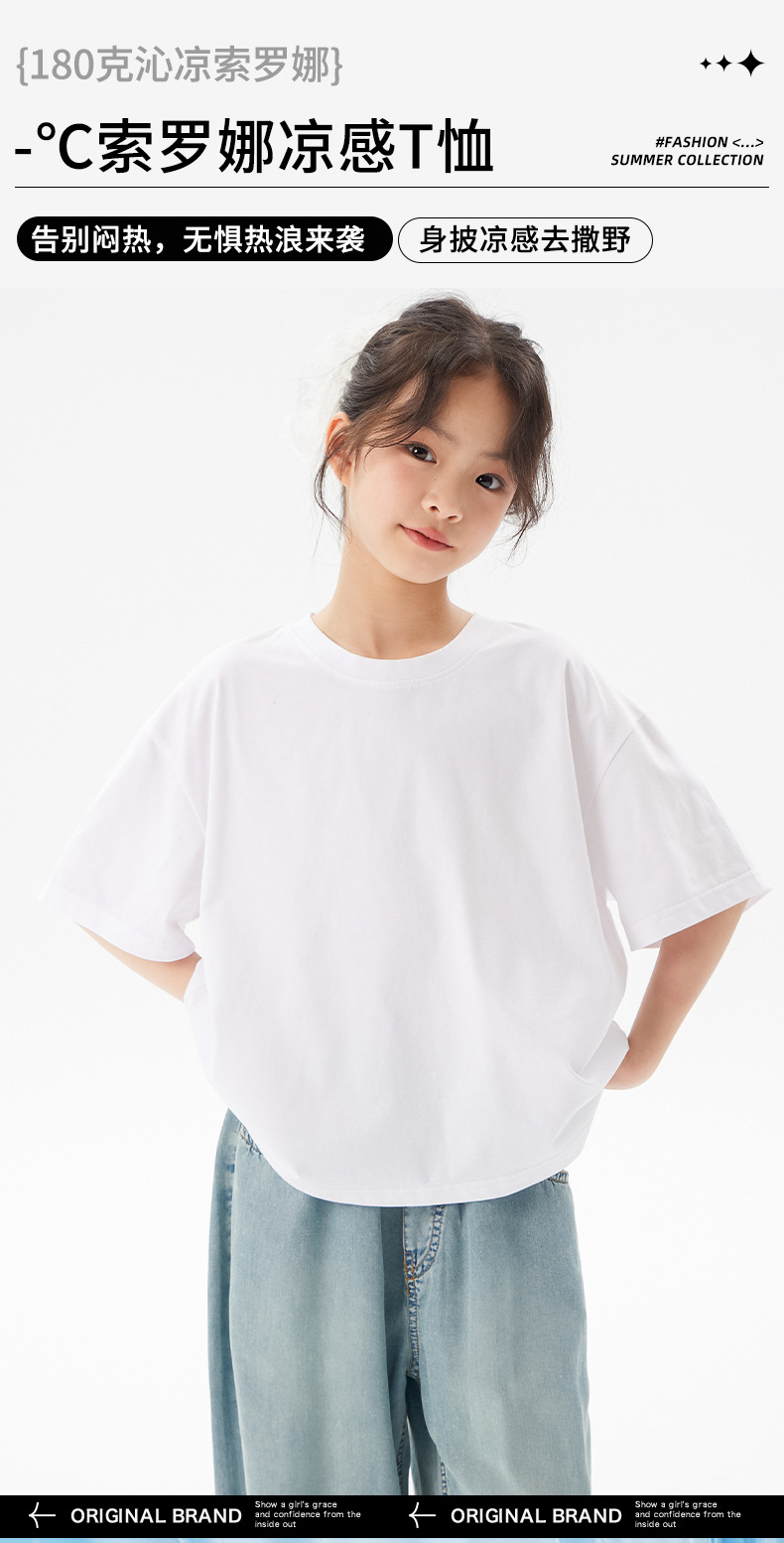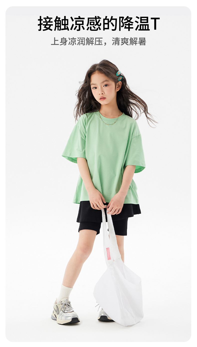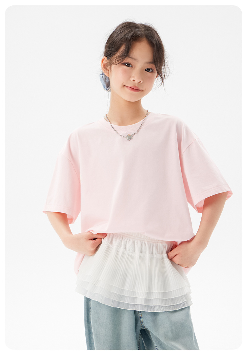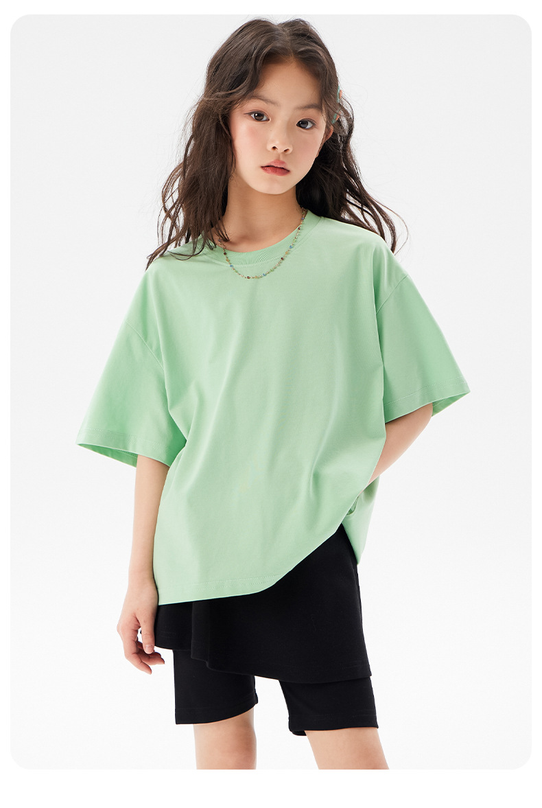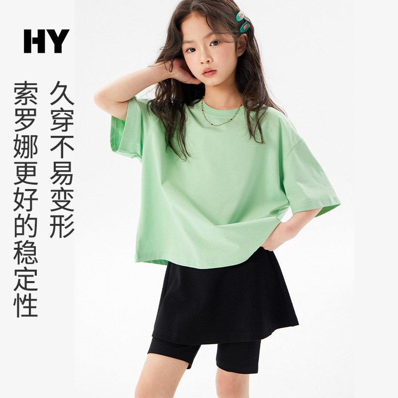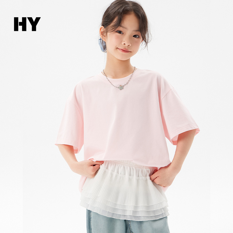 어린이 쿨 얇은 티셔츠 2025 여름 새 소녀 한국 스타일 도파민 라운드 넥 반소매 소녀 큰 아이 짧은 소매스토어 가기
