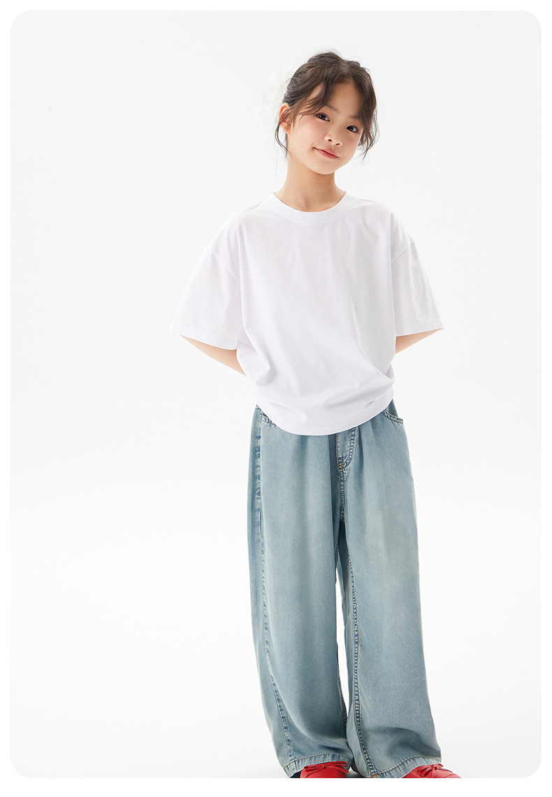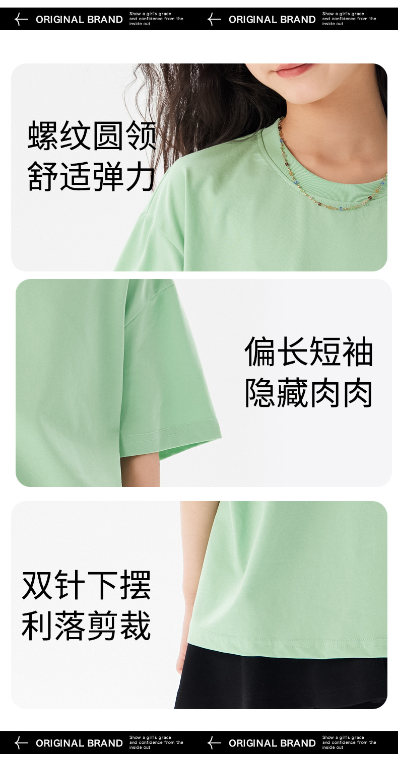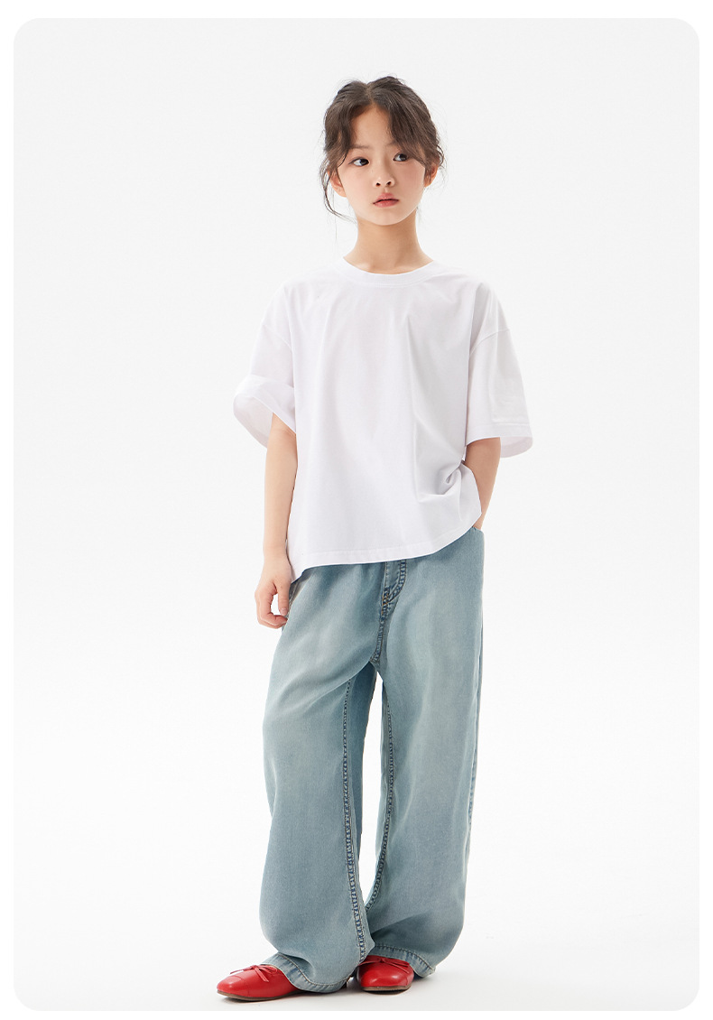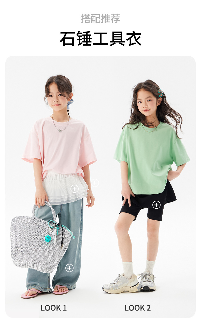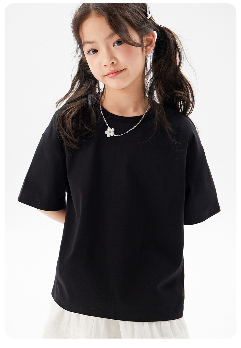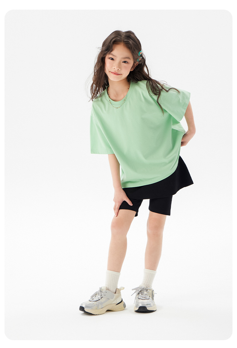어린이 쿨 얇은 티셔츠 2025 여름 새 소녀 한국 스타일 도파민 라운드 넥 반소매 소녀 큰 아이 짧은 소매스토어 가기