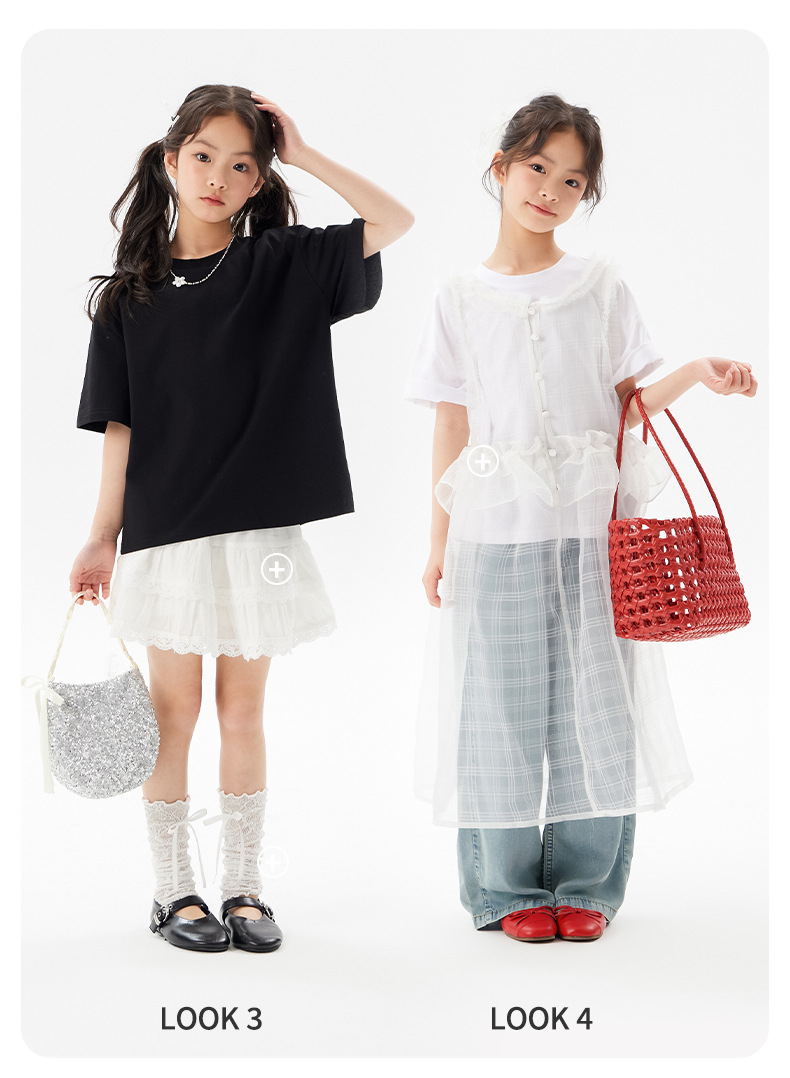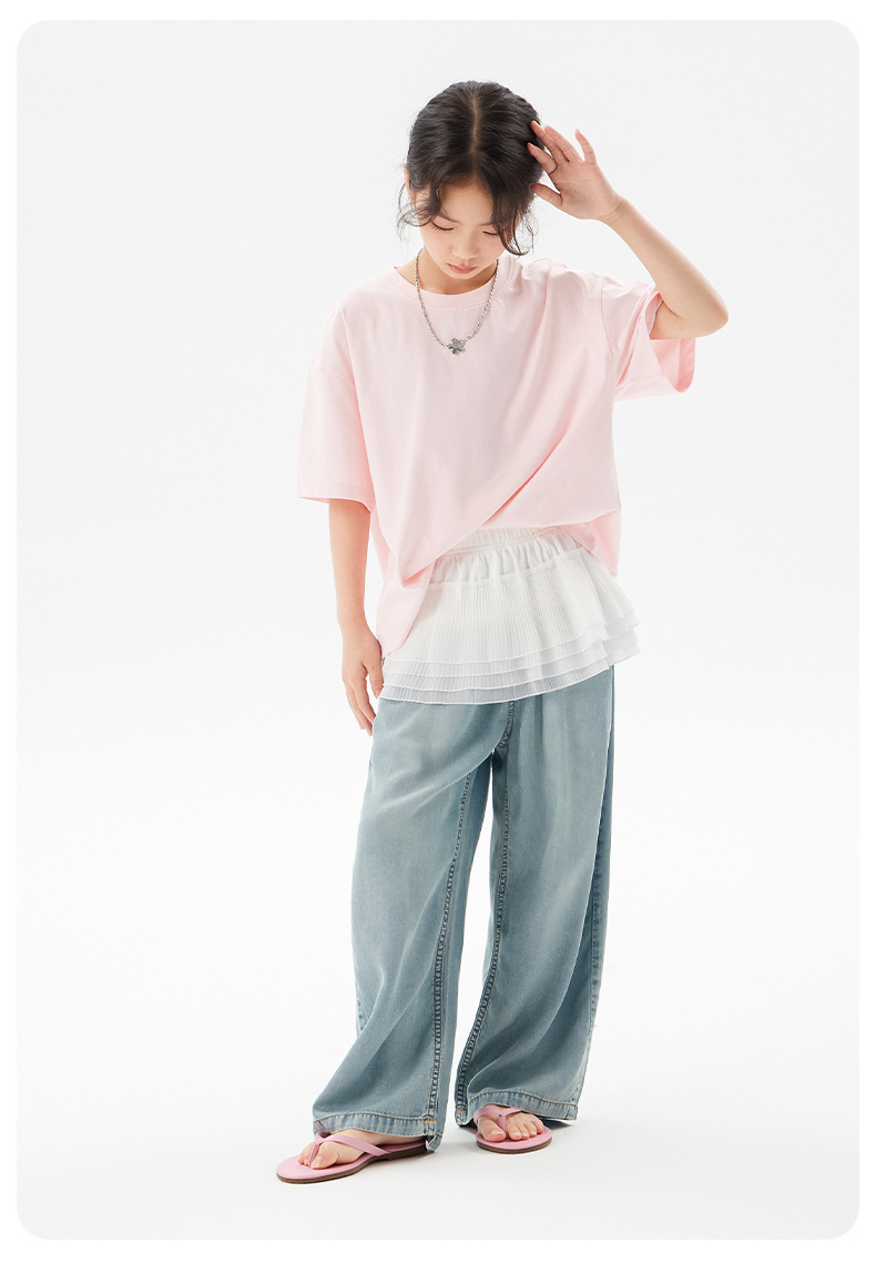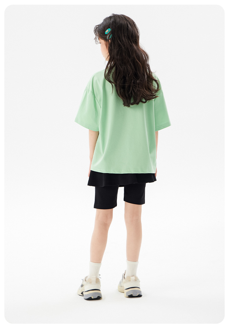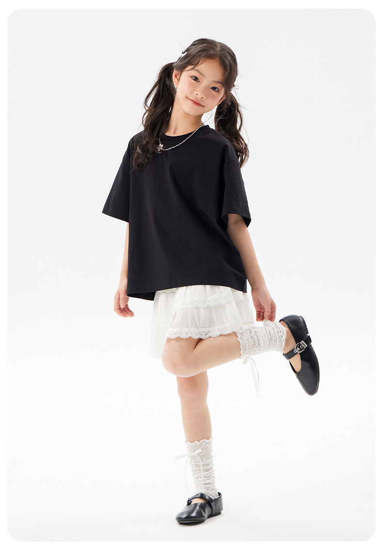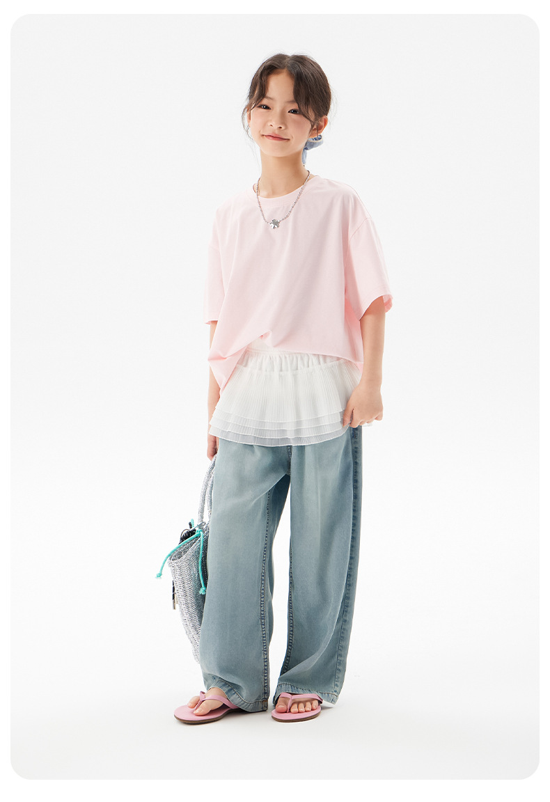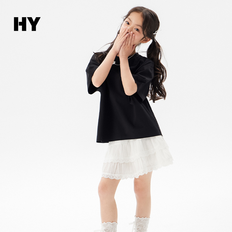 어린이 쿨 얇은 티셔츠 2025 여름 새 소녀 한국 스타일 도파민 라운드 넥 반소매 소녀 큰 아이 짧은 소매스토어 가기