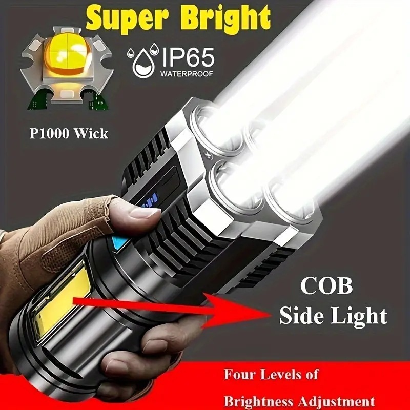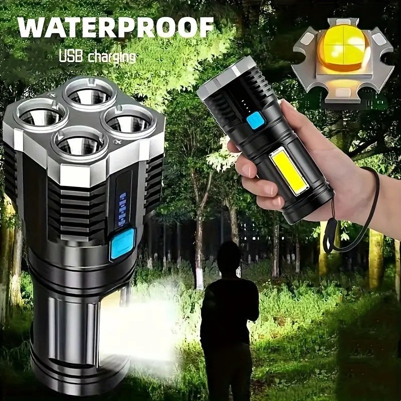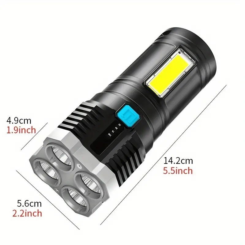 국경 장거리 ABS 4 램프 구슬 손전등 LED 측면 조명 야외 휴대용 가정용 USB 충전식 손전등스토어 가기