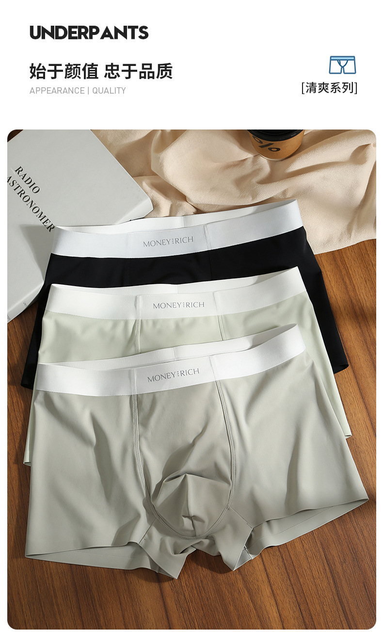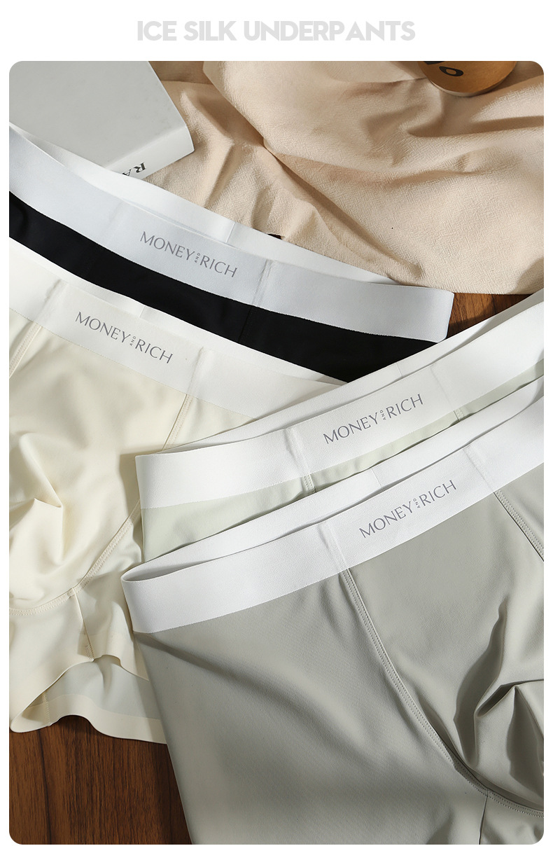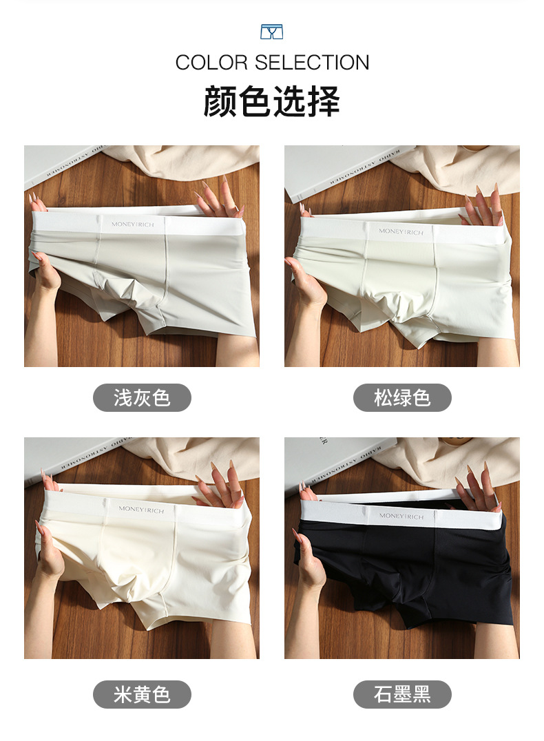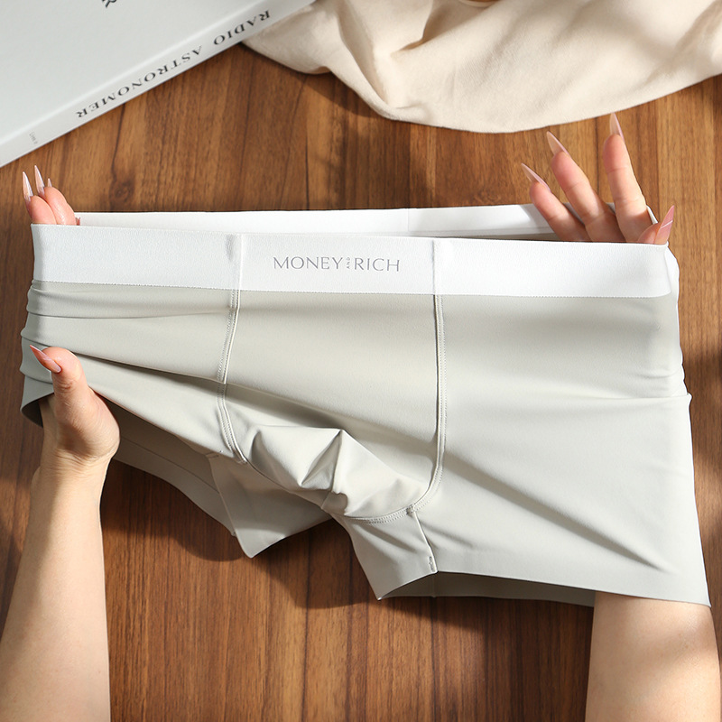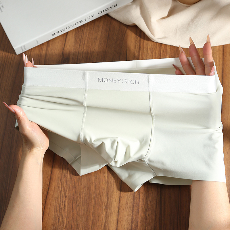 남자 친구를 위한 남성용 무봉제 우유 가죽 속옷, 통기성이 뛰어난 남성용 사각팬티, 남아용 아이스 실크 여름 반바지스토어 가기