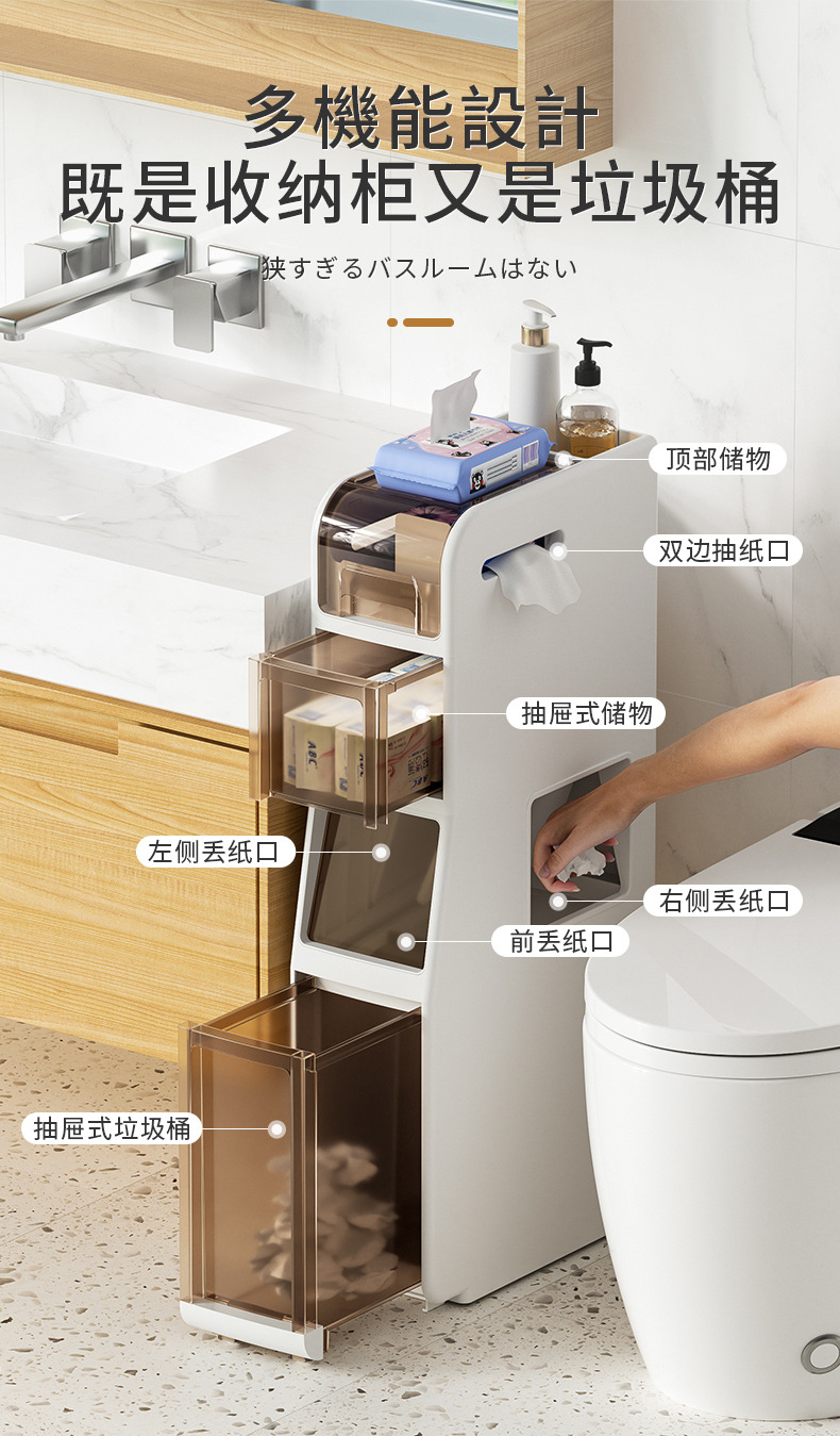 갭 캐비닛 화장실 랙 화장실 보관 캐비닛 휴지통 폐기물 빈 도매 화장실 서랍 보관 캐비닛스토어 가기