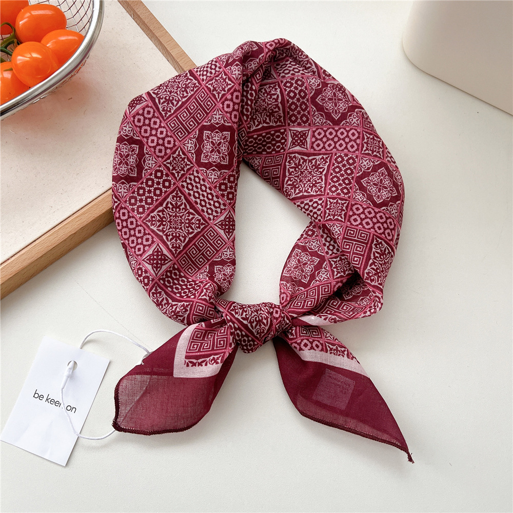 55 여름 코튼 리넨 실크 스카프 여자 올 매치 봄과 가을 작은 광장 목 보호 헤드 스카프 장식 스카프 패션 웨스턴 스타일 스카프