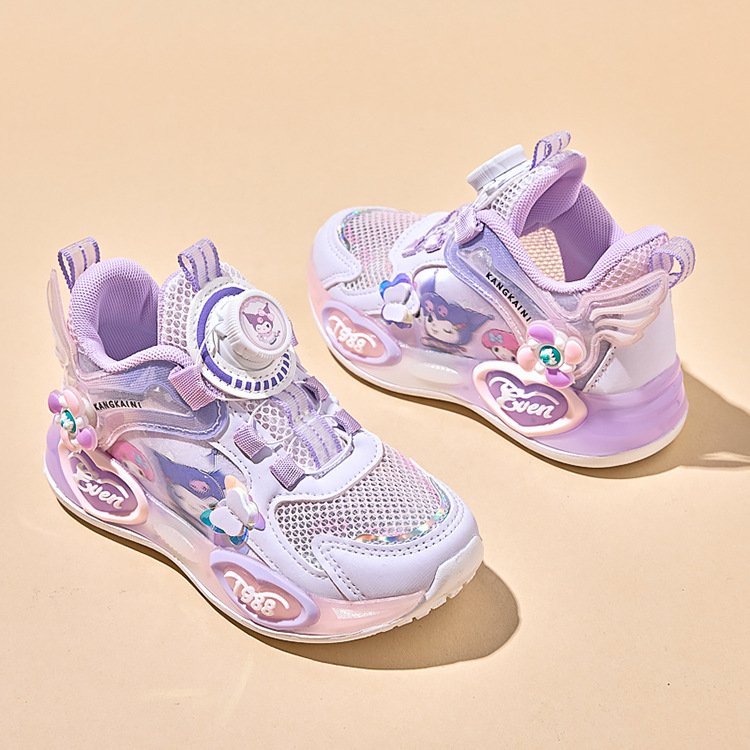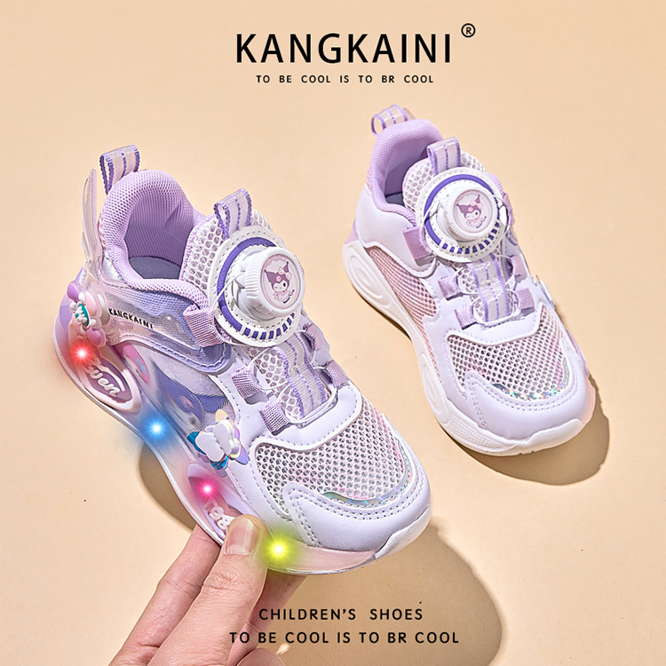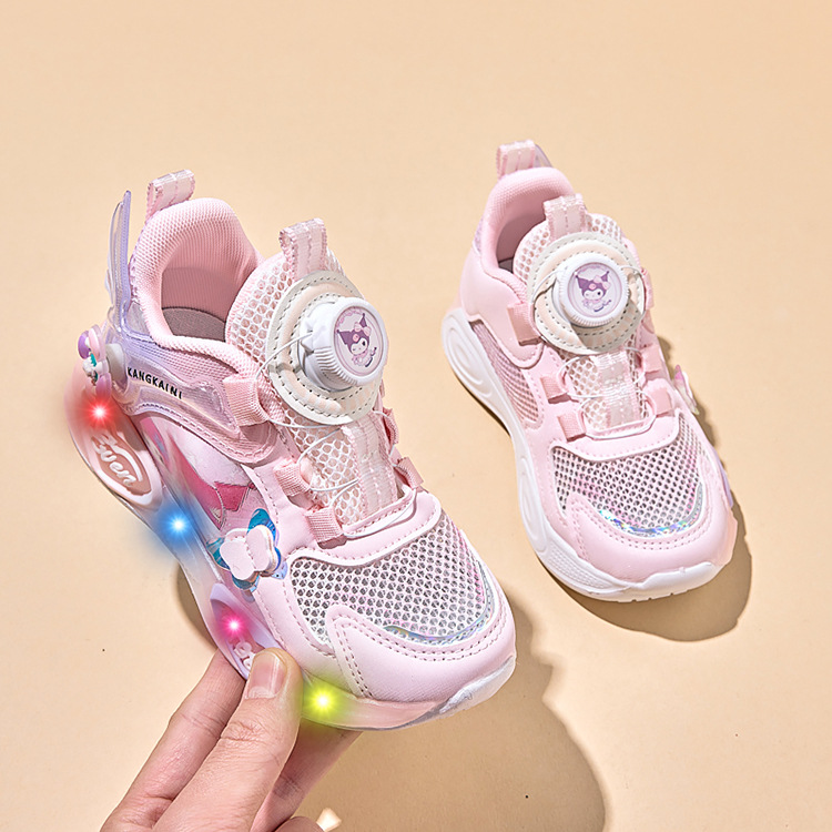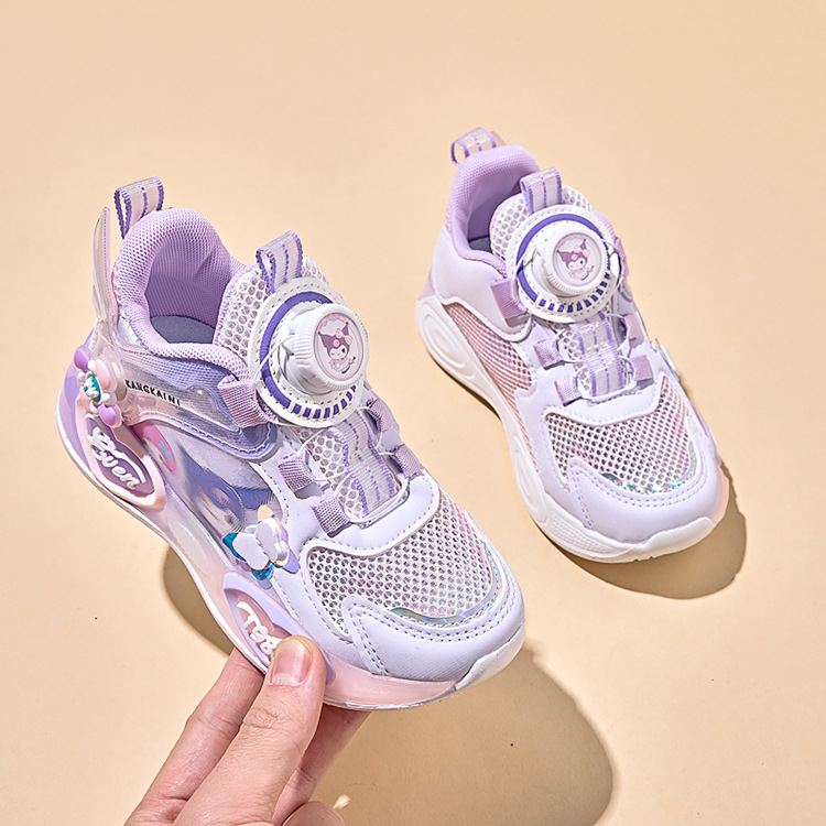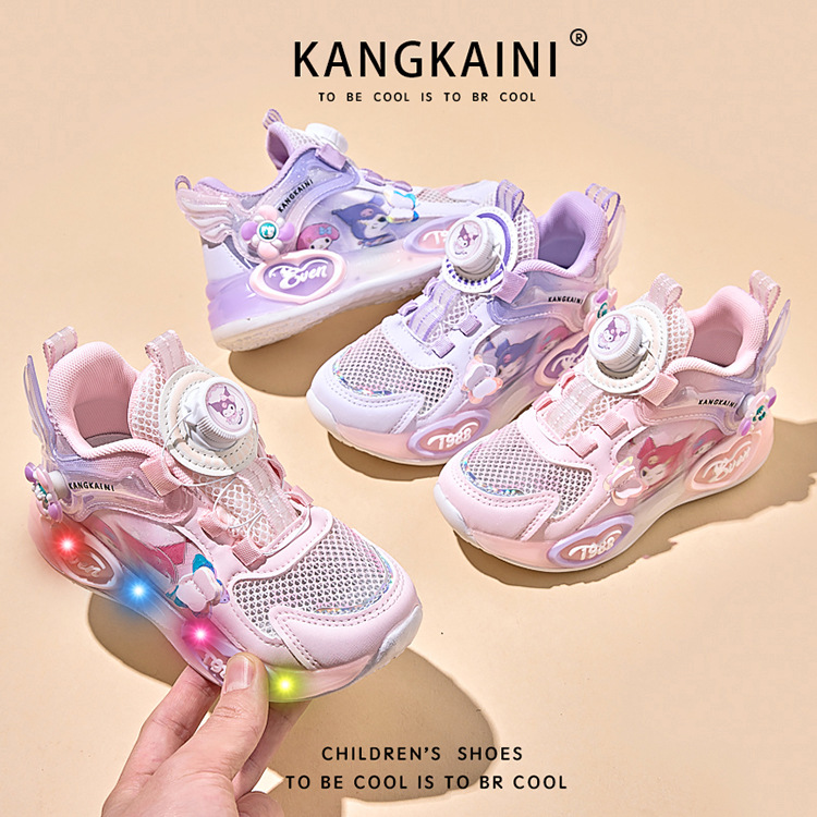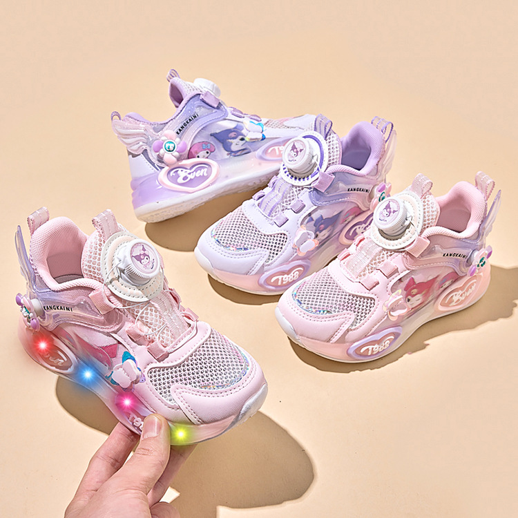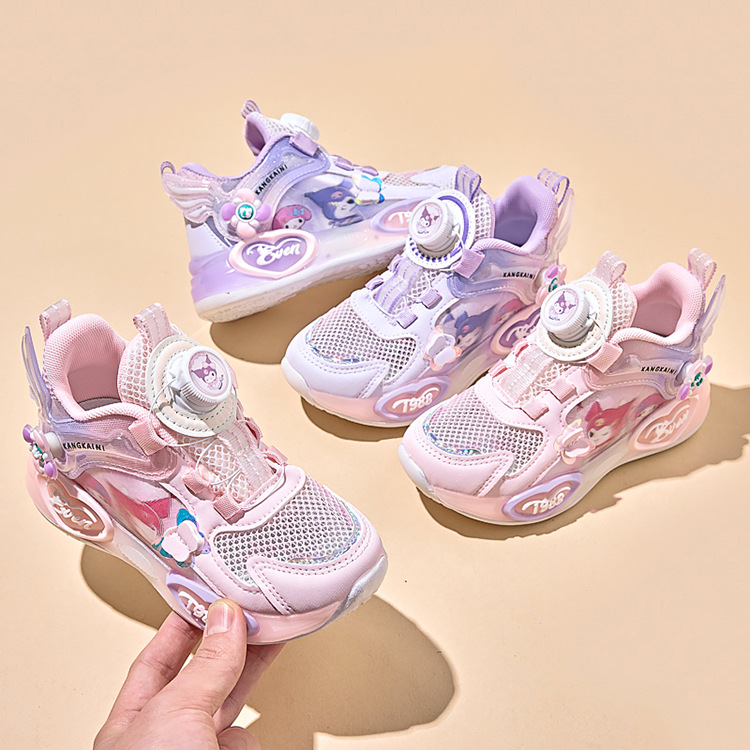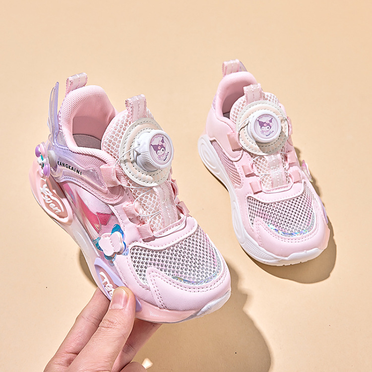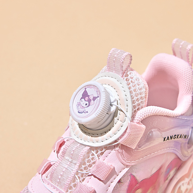여아용 싱글 메쉬 및 더블 메쉬 가죽 표면 발광 쿠로미 운동화 2026 봄 여름 가을 신상품 회전 버튼 러닝화스토어 가기