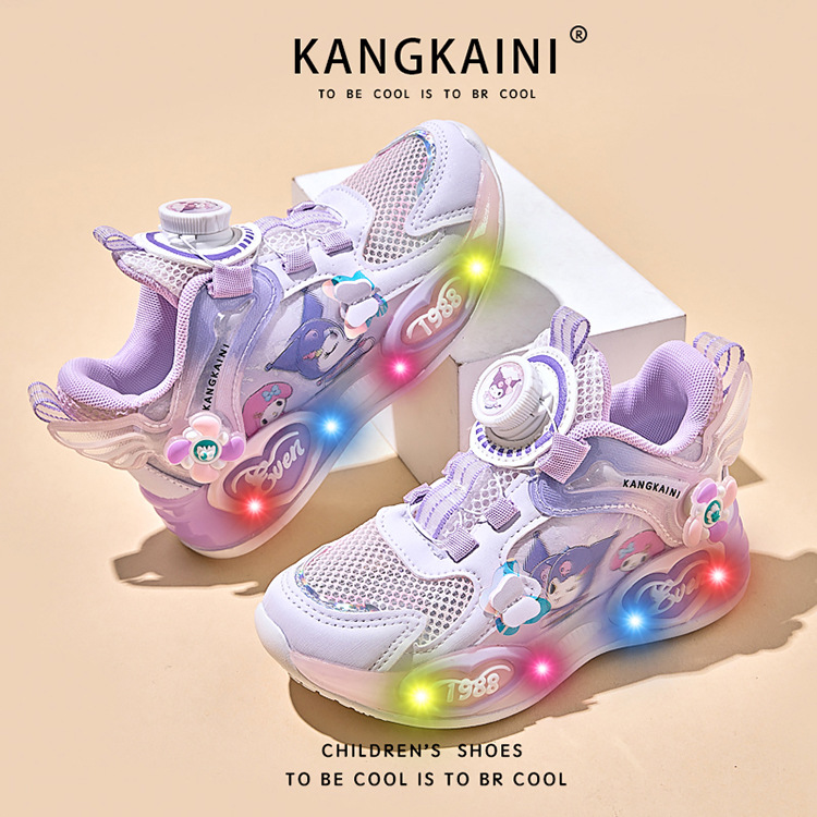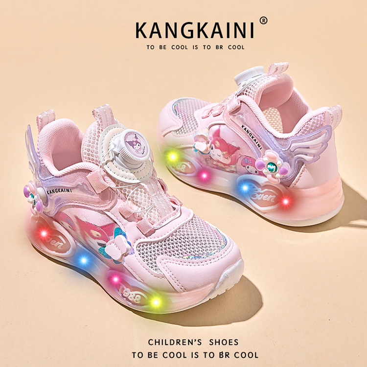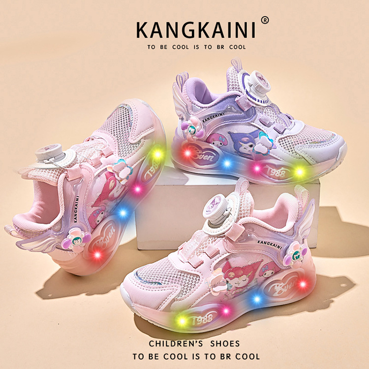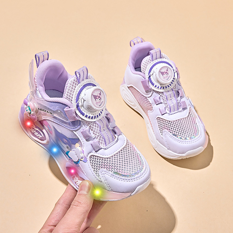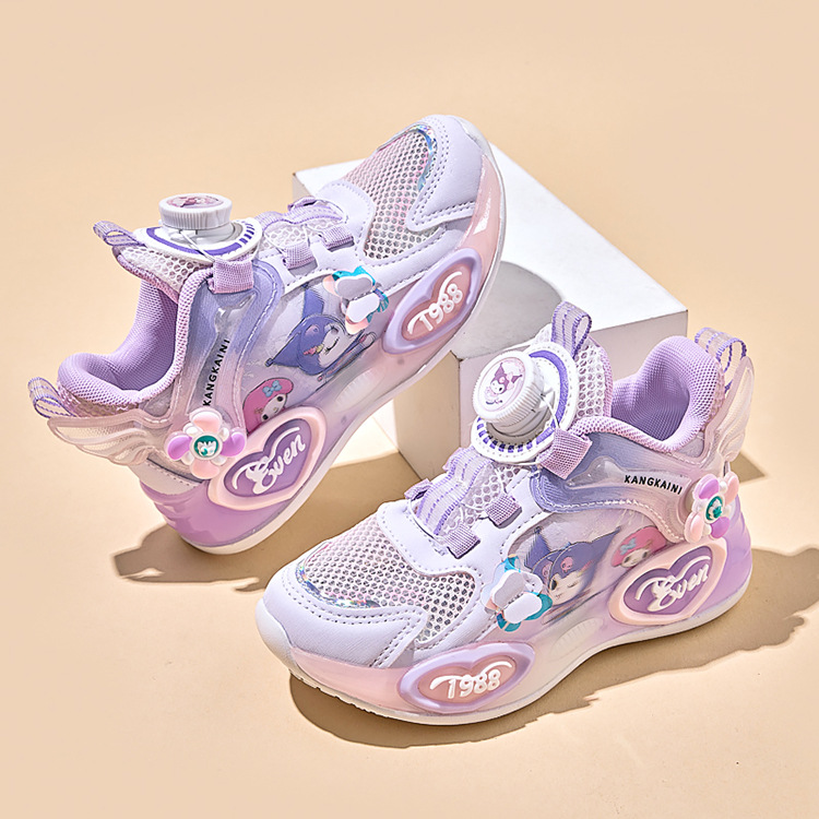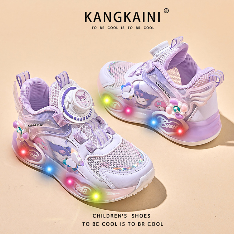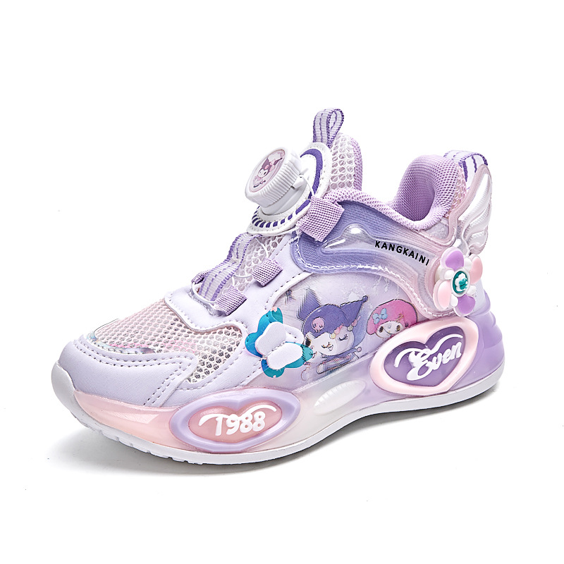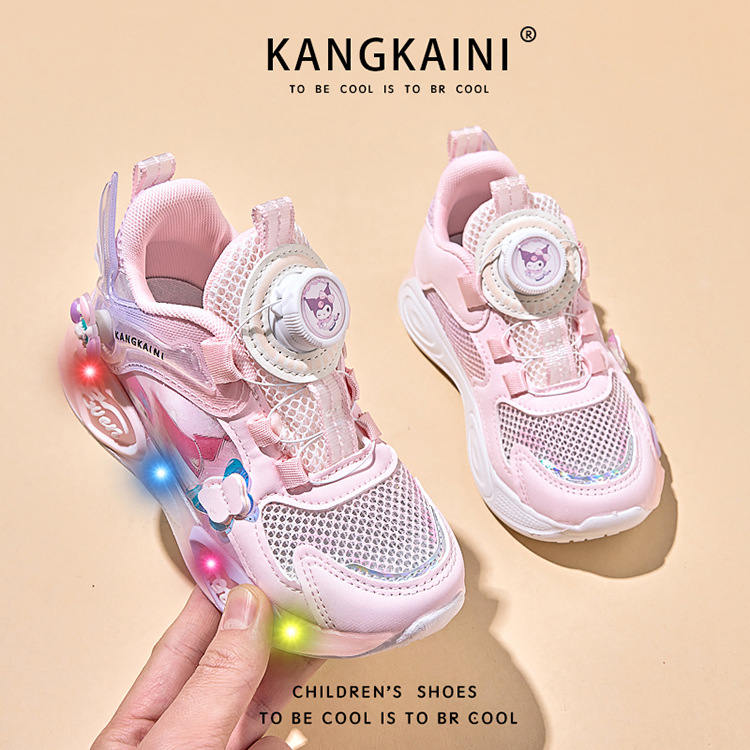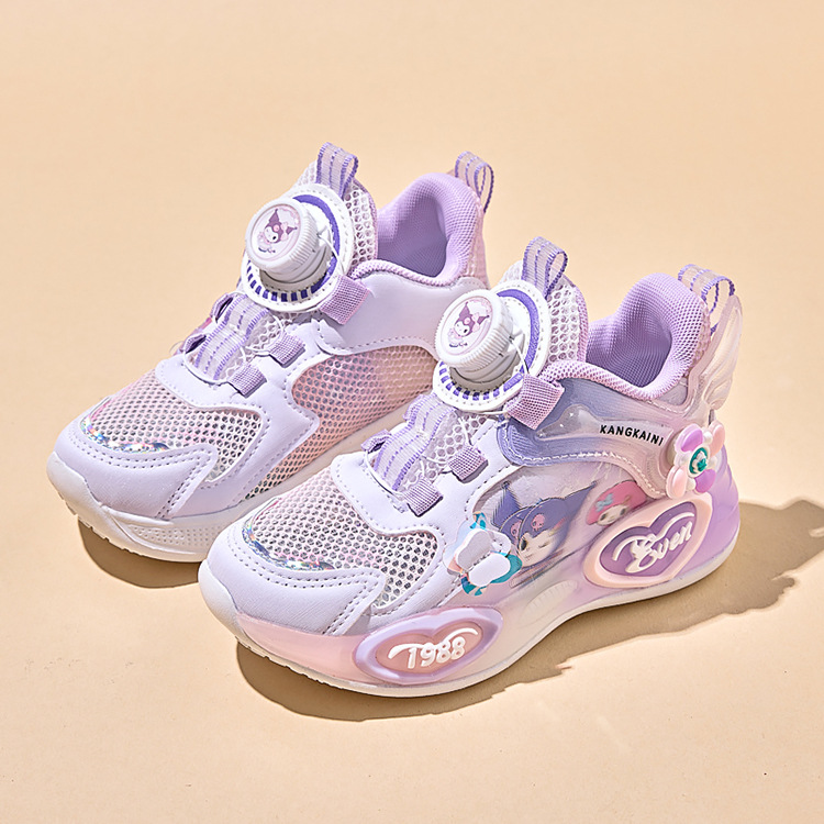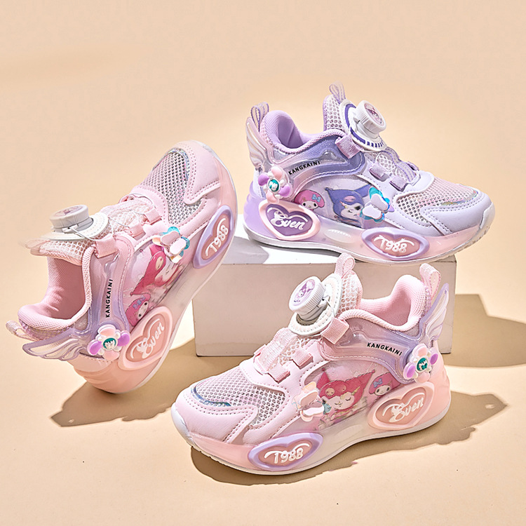 여아용 싱글 메쉬 및 더블 메쉬 가죽 표면 발광 쿠로미 운동화 2026 봄 여름 가을 신상품 회전 버튼 러닝화스토어 가기