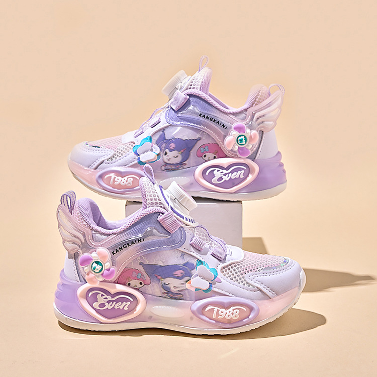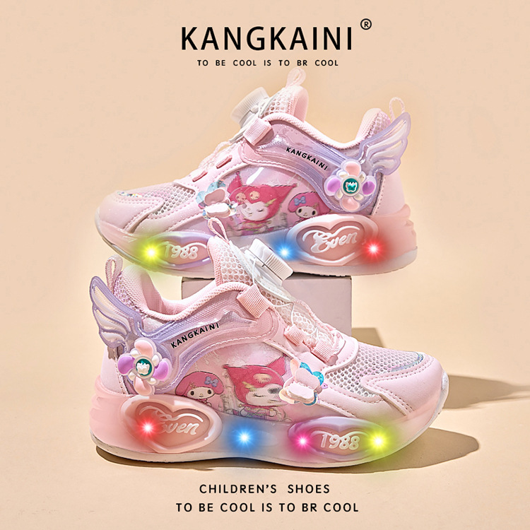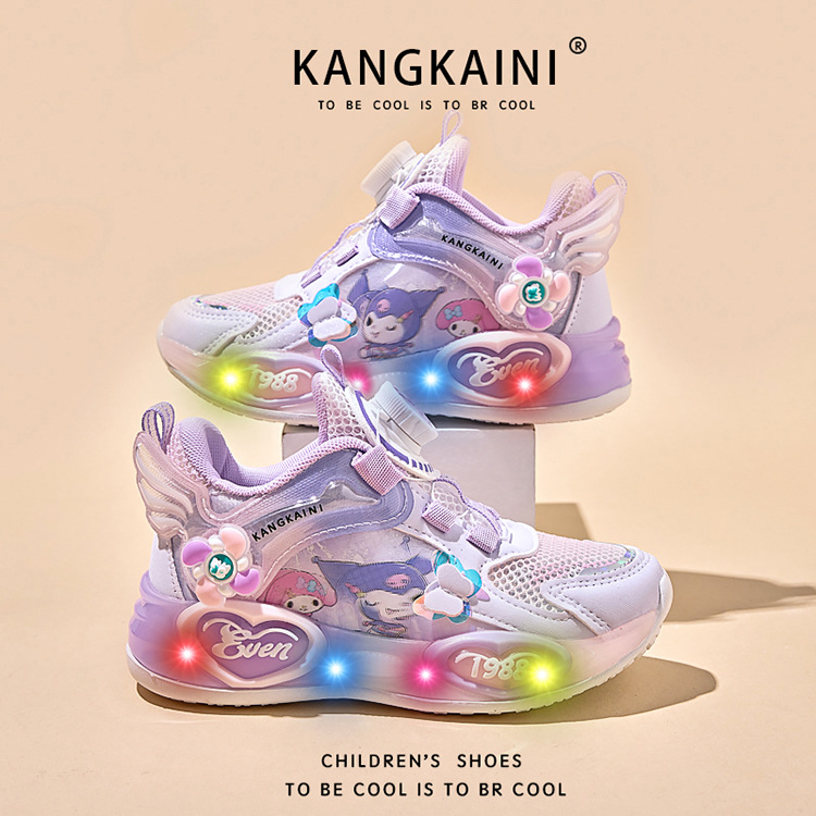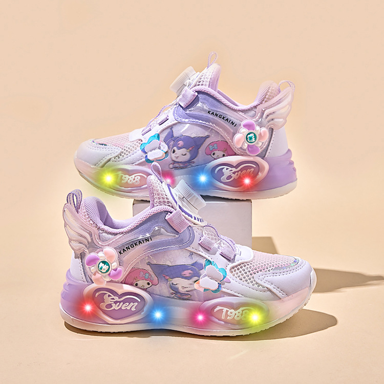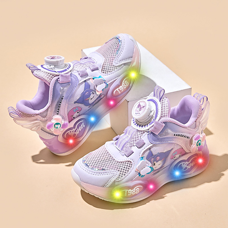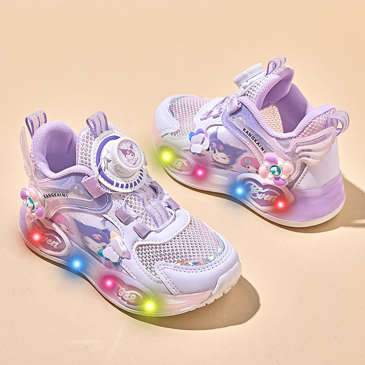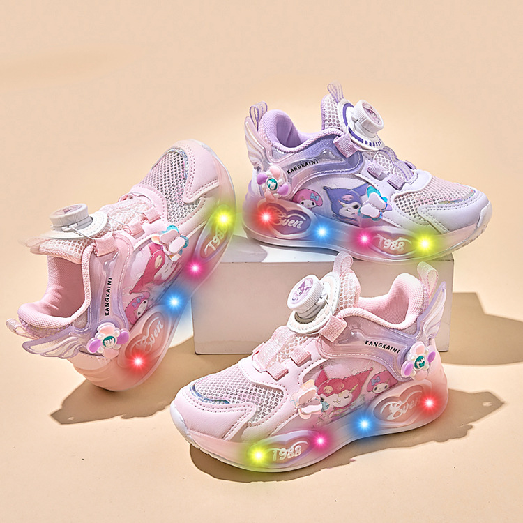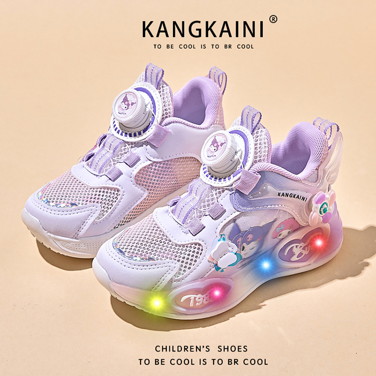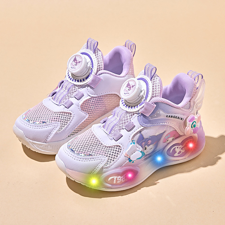 여아용 싱글 메쉬 및 더블 메쉬 가죽 표면 발광 쿠로미 운동화 2026 봄 여름 가을 신상품 회전 버튼 러닝화스토어 가기