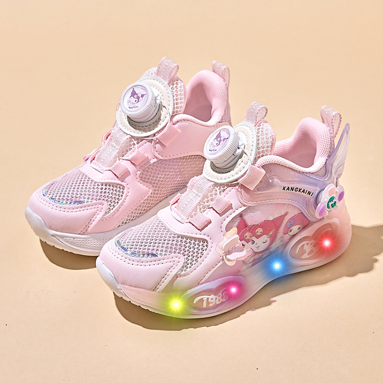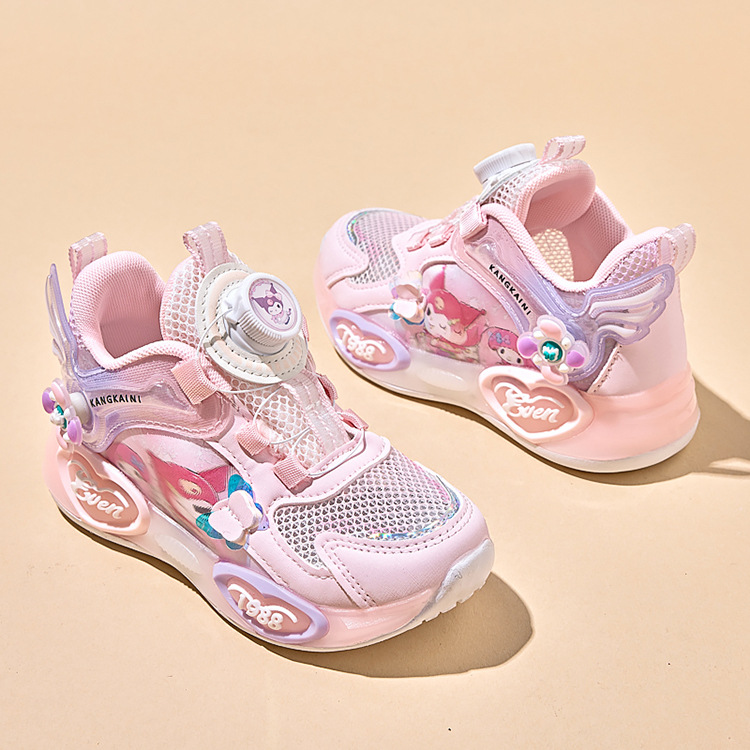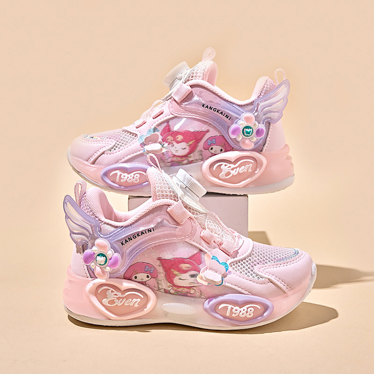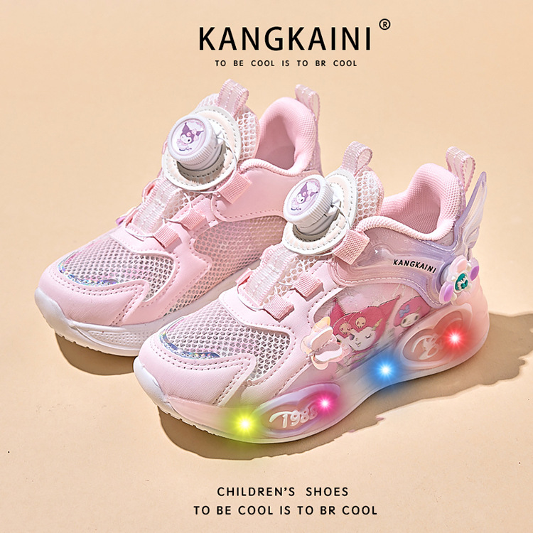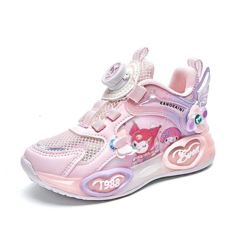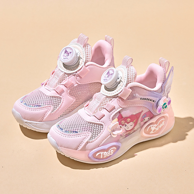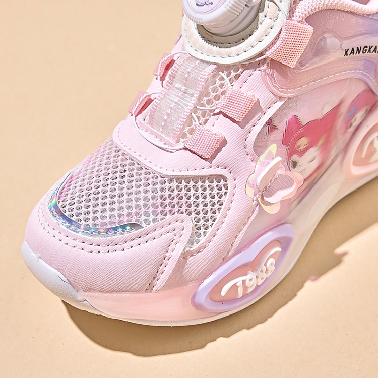 여아용 싱글 메쉬 및 더블 메쉬 가죽 표면 발광 쿠로미 운동화 2026 봄 여름 가을 신상품 회전 버튼 러닝화