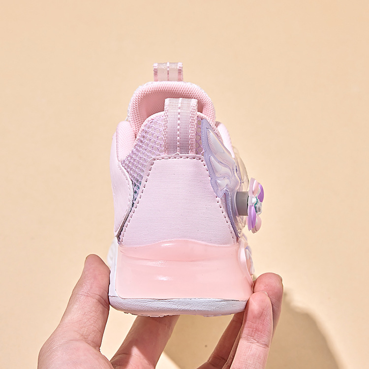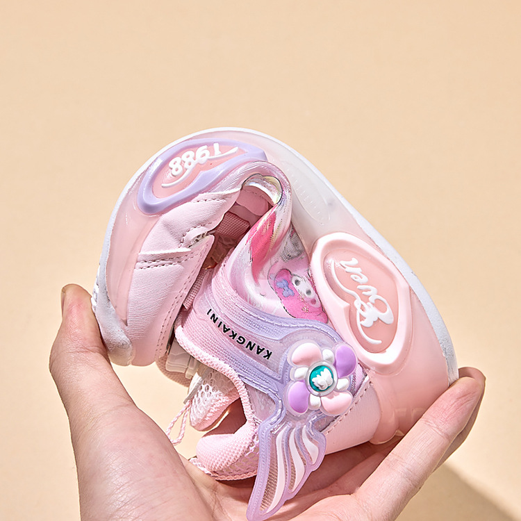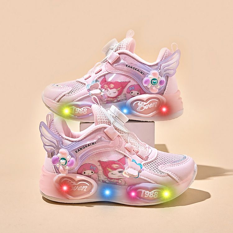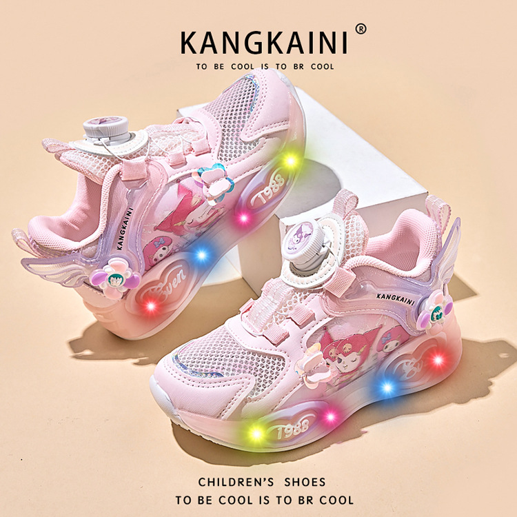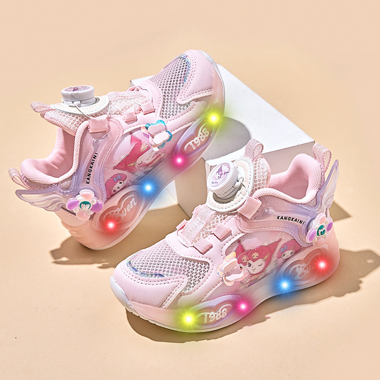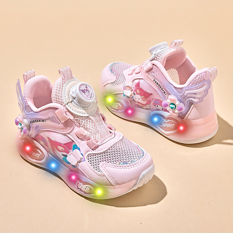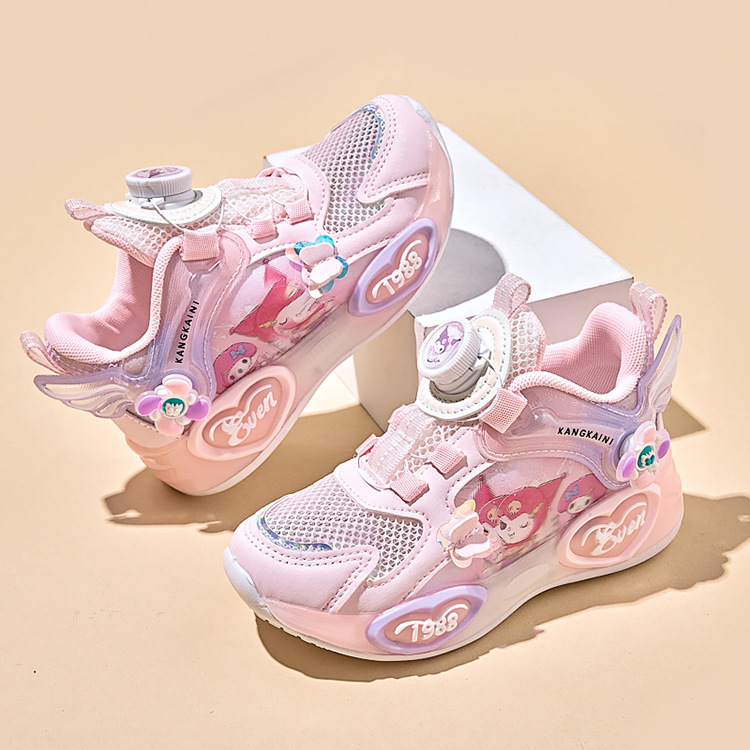 여아용 싱글 메쉬 및 더블 메쉬 가죽 표면 발광 쿠로미 운동화 2026 봄 여름 가을 신상품 회전 버튼 러닝화
