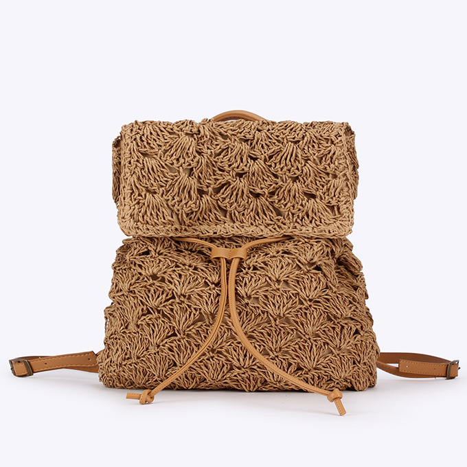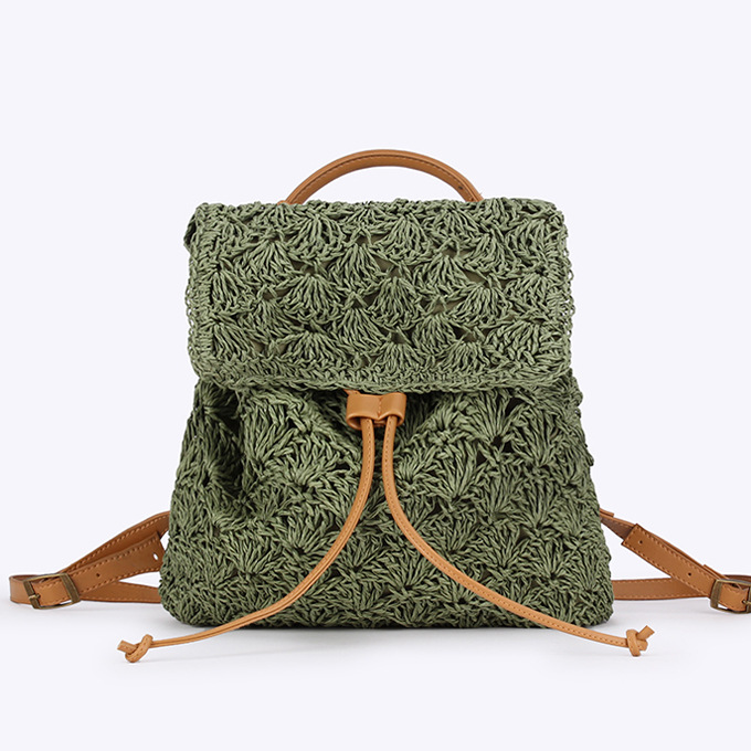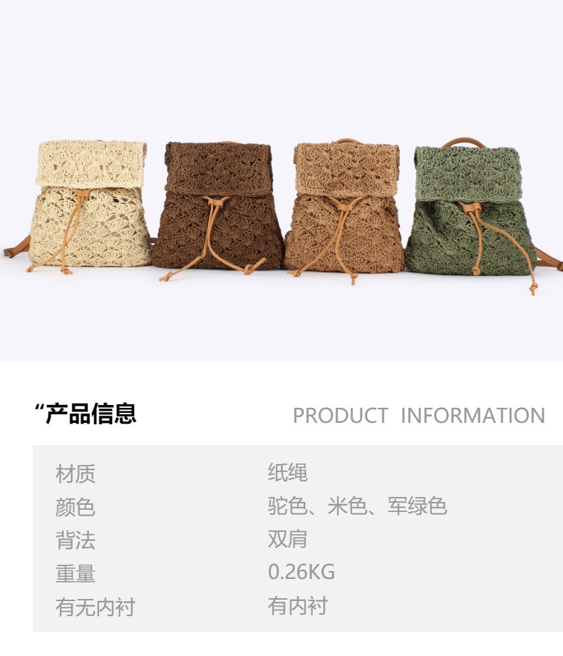 새로운 종이 로프 짠 배낭 솔리드 컬러 간단한 대용량 여성 밀짚 가방 다목적 비치 가방