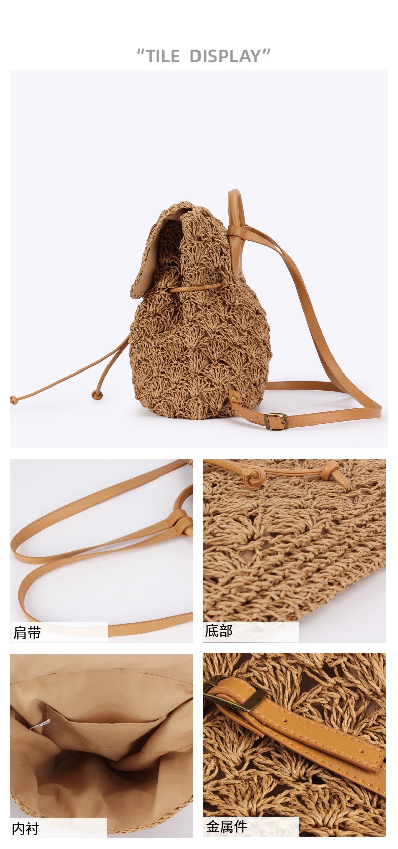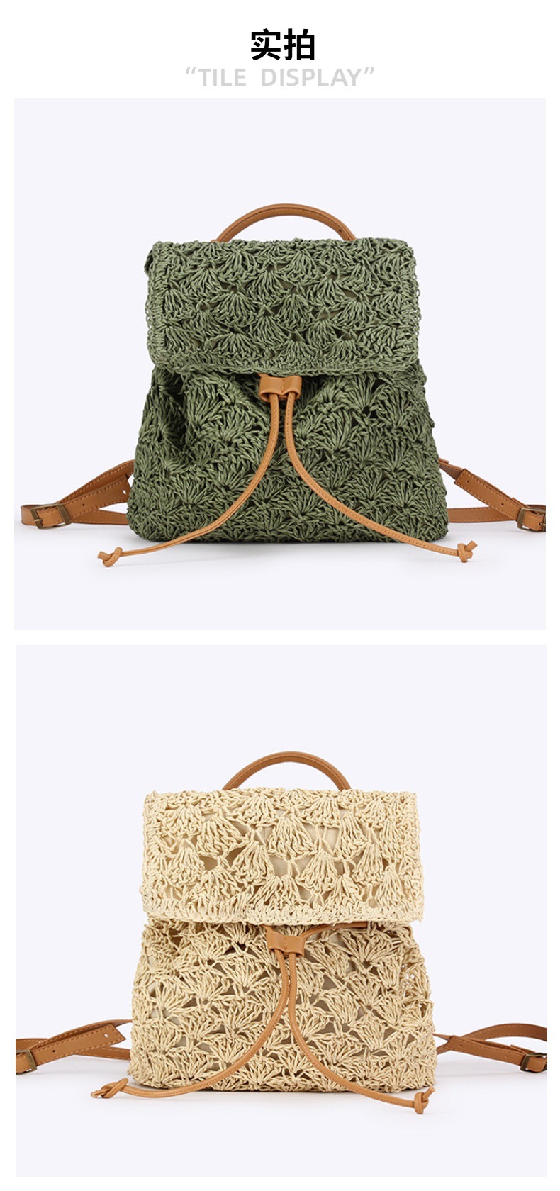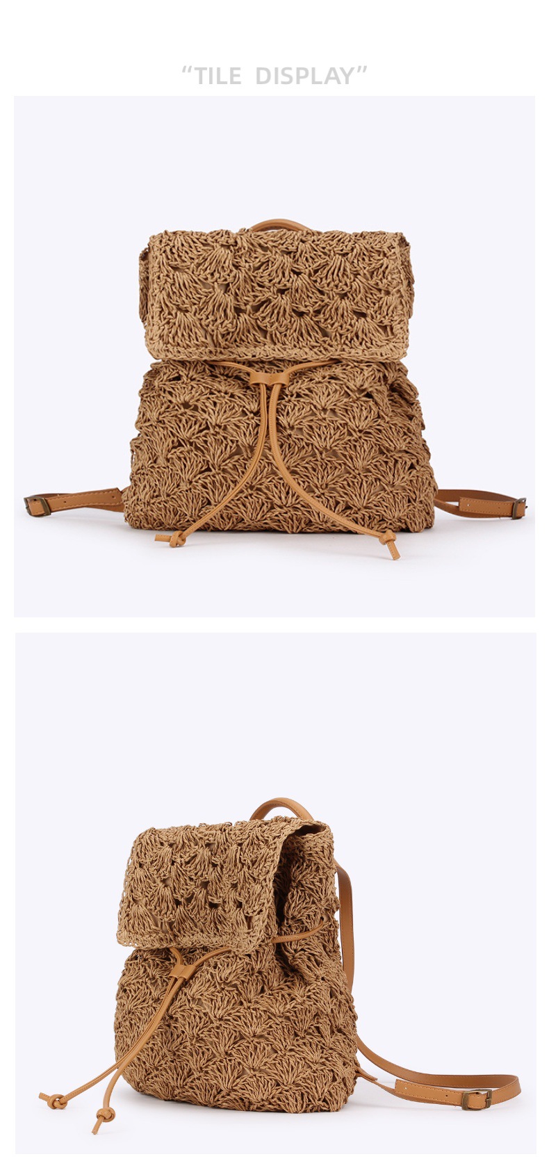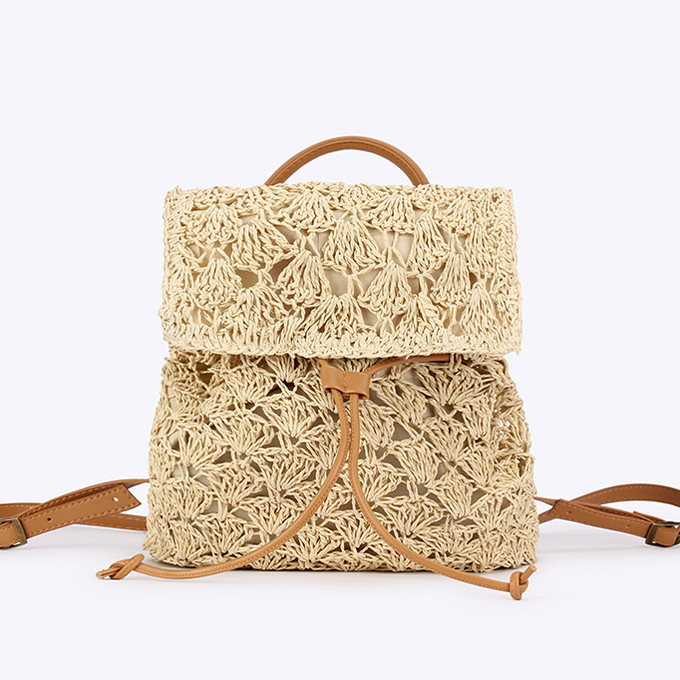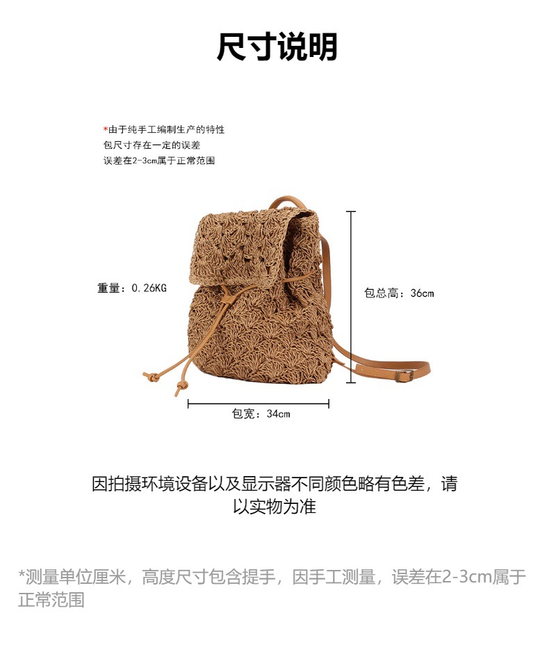 새로운 종이 로프 짠 배낭 솔리드 컬러 간단한 대용량 여성 밀짚 가방 다목적 비치 가방스토어 가기