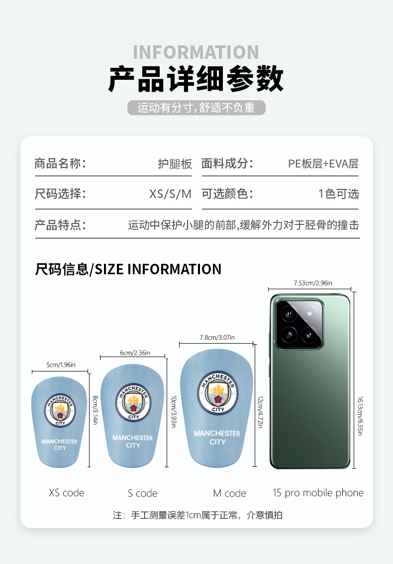 • (XS 사이즈 길이 8cm, 폭 5cm) 맨체스터 시티 정강이 보호대