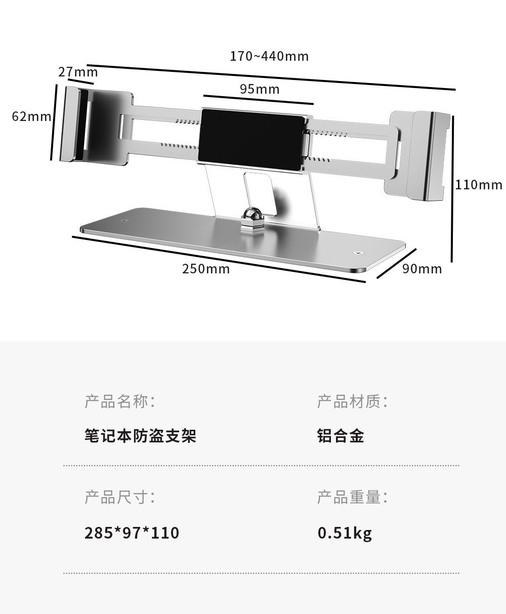 잠금 장치가있는 노트북 스탠드 도난 방지 데스크탑 디스플레이 알루미늄 합금 태블릿 스탠드 조절 가능 다기능스토어 가기