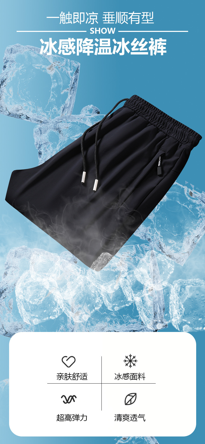 2025 새로운 아이스 실크 바지 남자 캐주얼 빠른 건조 바지 여름 플러스 사이즈 스포츠 바지 캐주얼 실키 바지스토어 가기