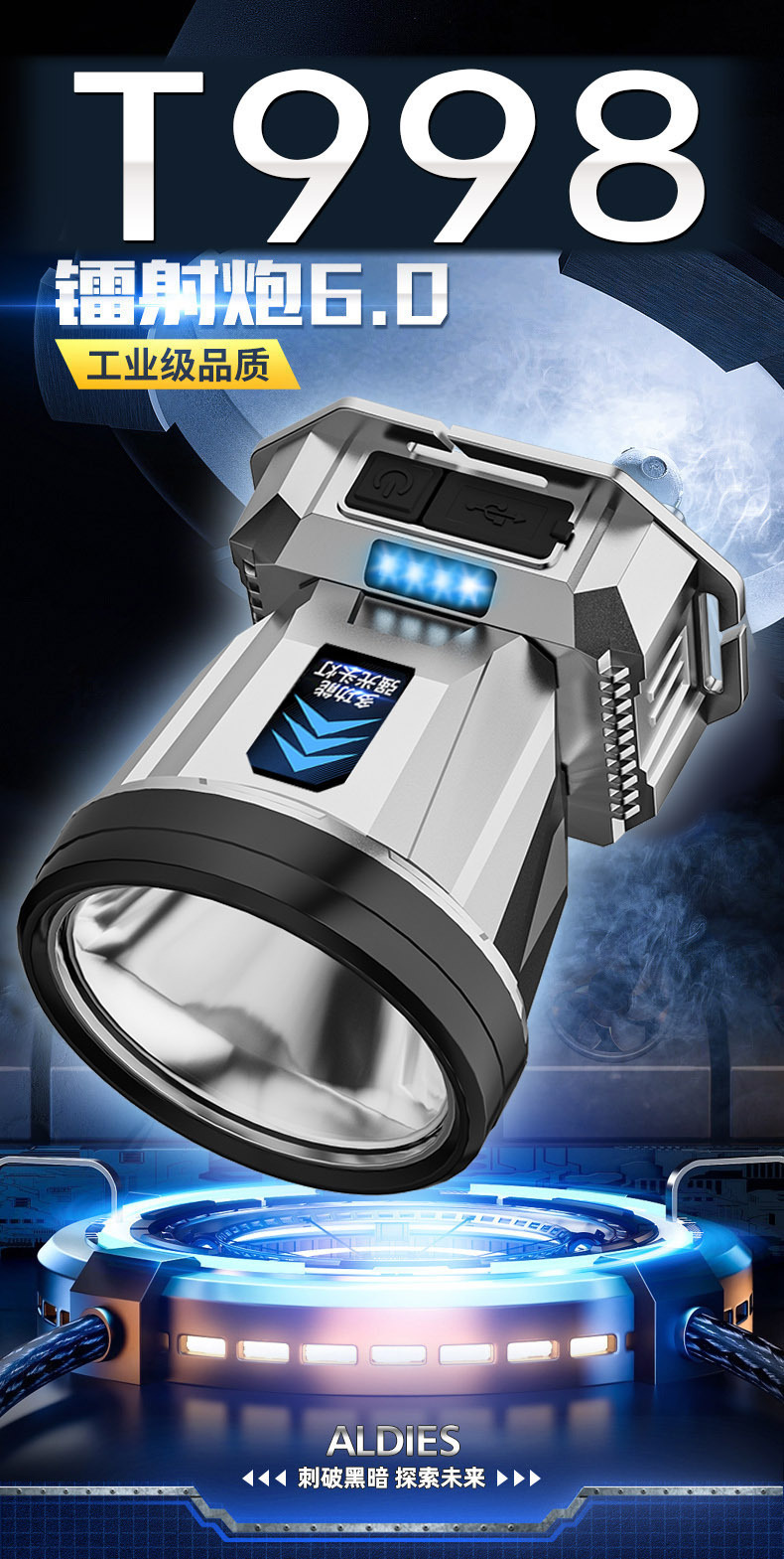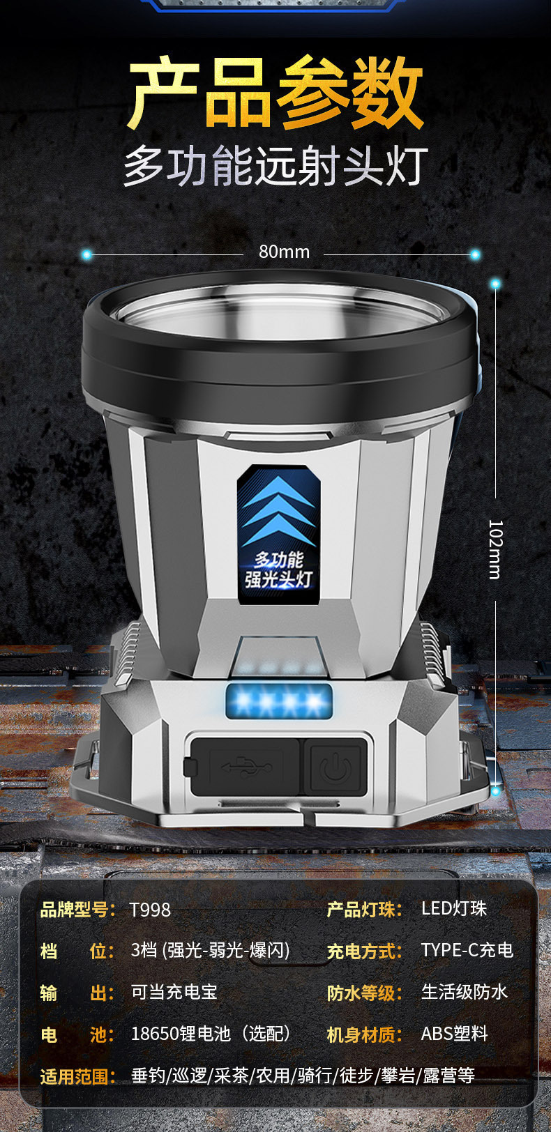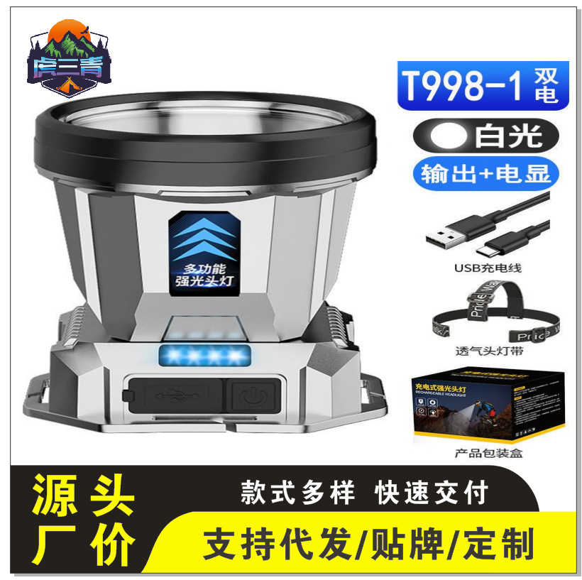 • T998 헤드라이트 [전자 디스플레이 + 휴대폰 충전] 단일 리튬 배터리 백색광