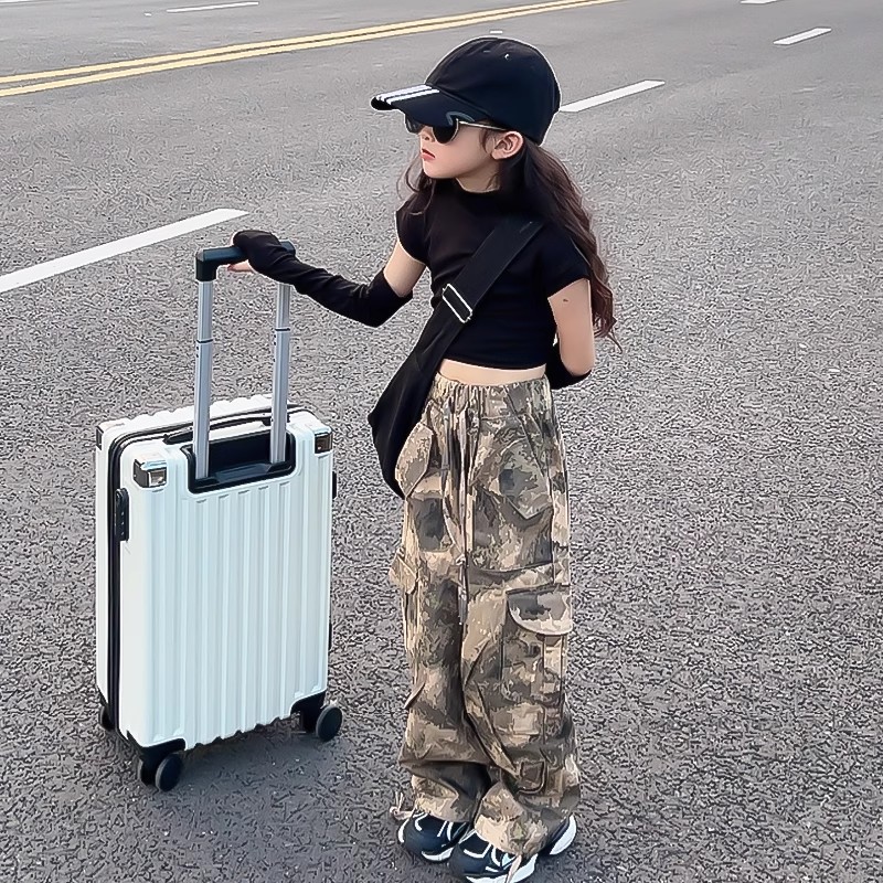 여아 바지, 봄 여름 캐주얼 바지, 봄 신상 아동 작업복, 패셔너블한 스트리트 스타일, 루즈한 중대형 아동 바지스토어 가기