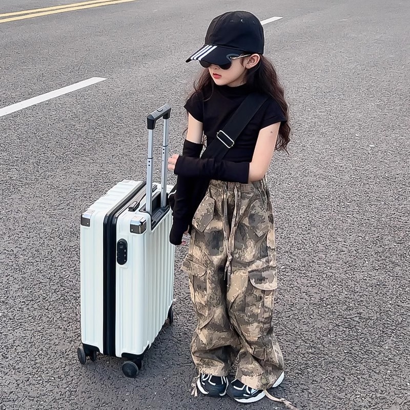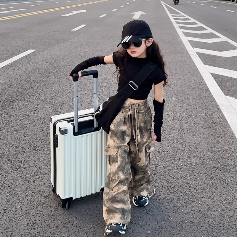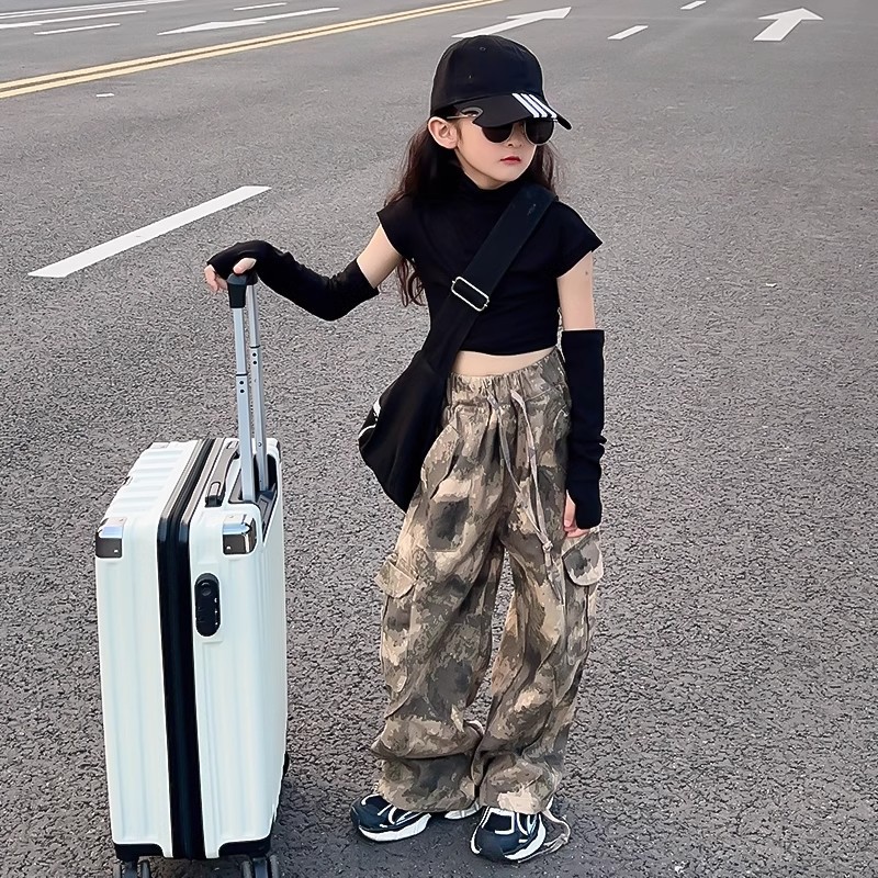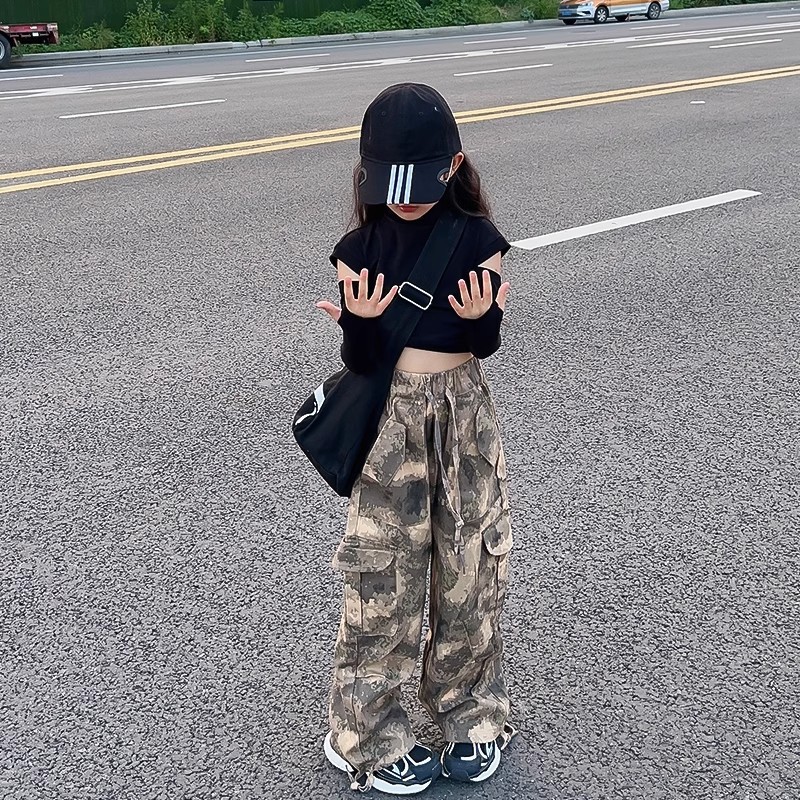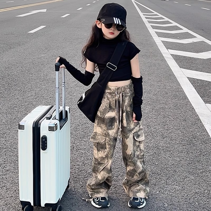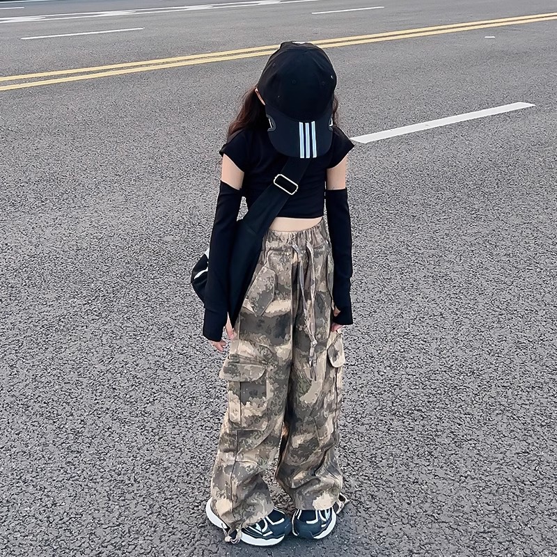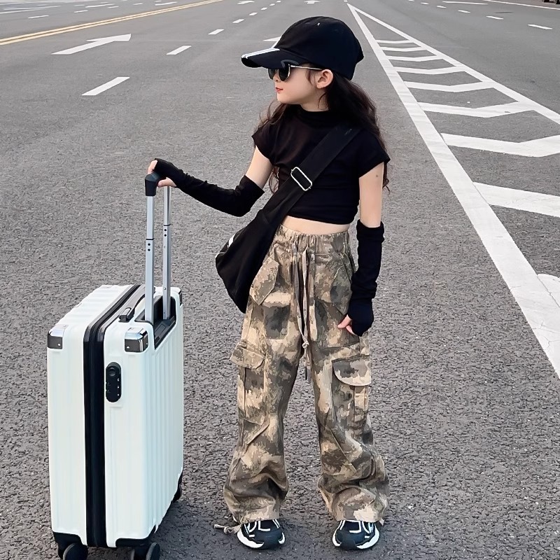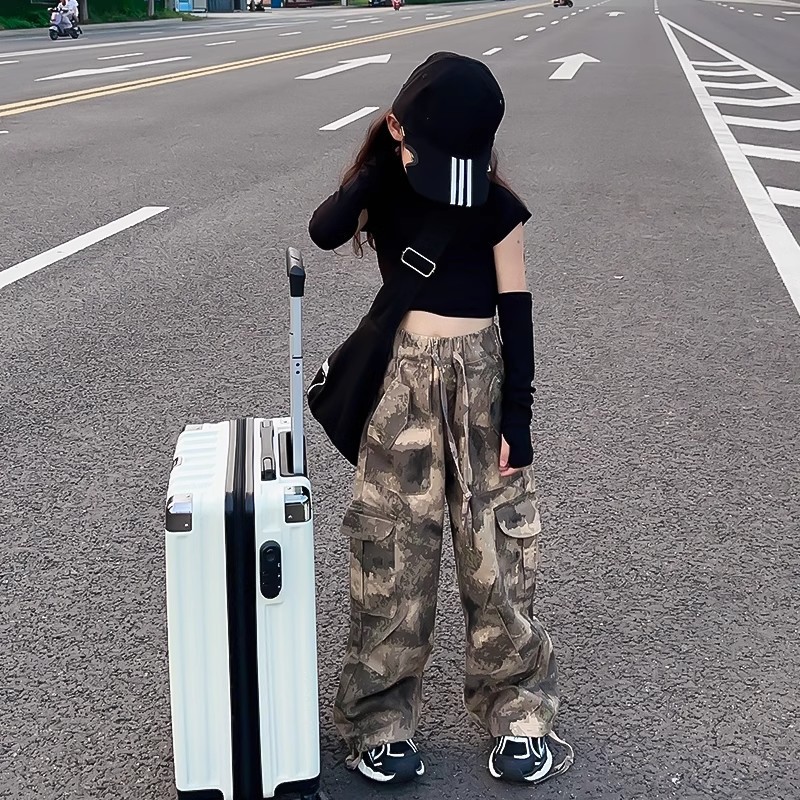 여아 바지, 봄 여름 캐주얼 바지, 봄 신상 아동 작업복, 패셔너블한 스트리트 스타일, 루즈한 중대형 아동 바지