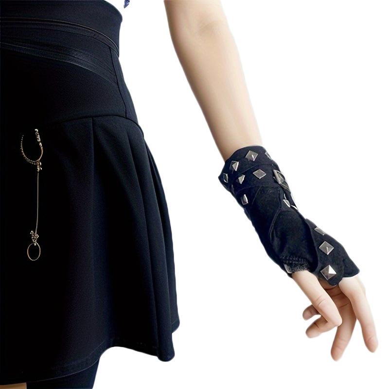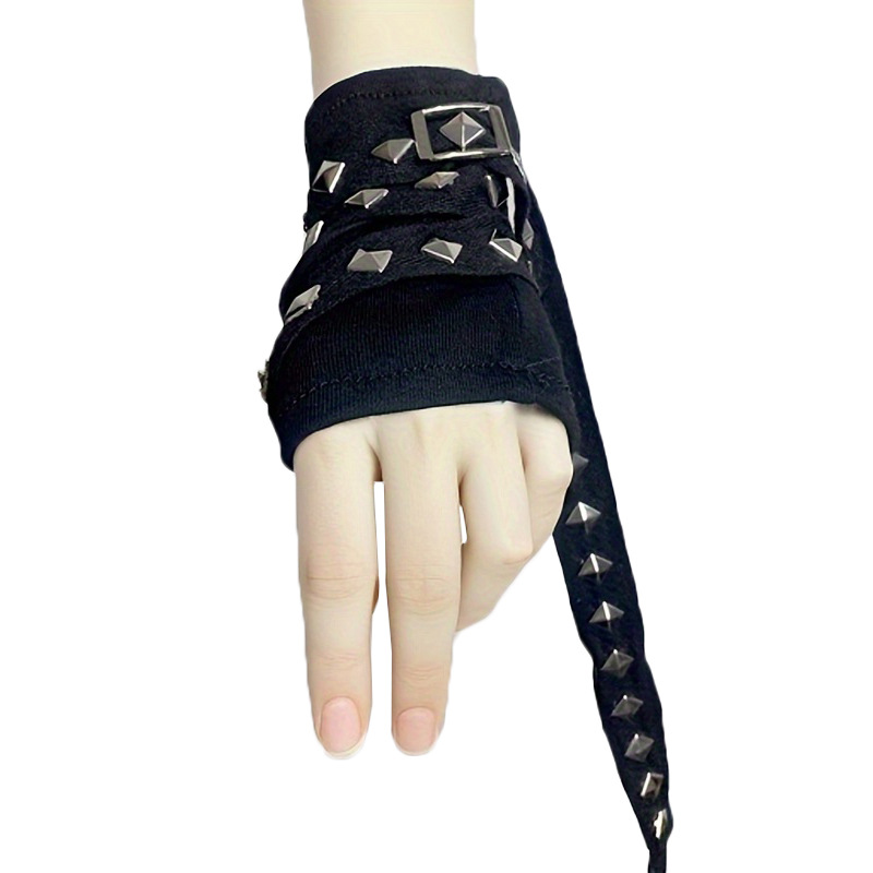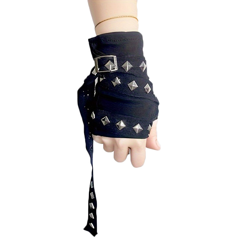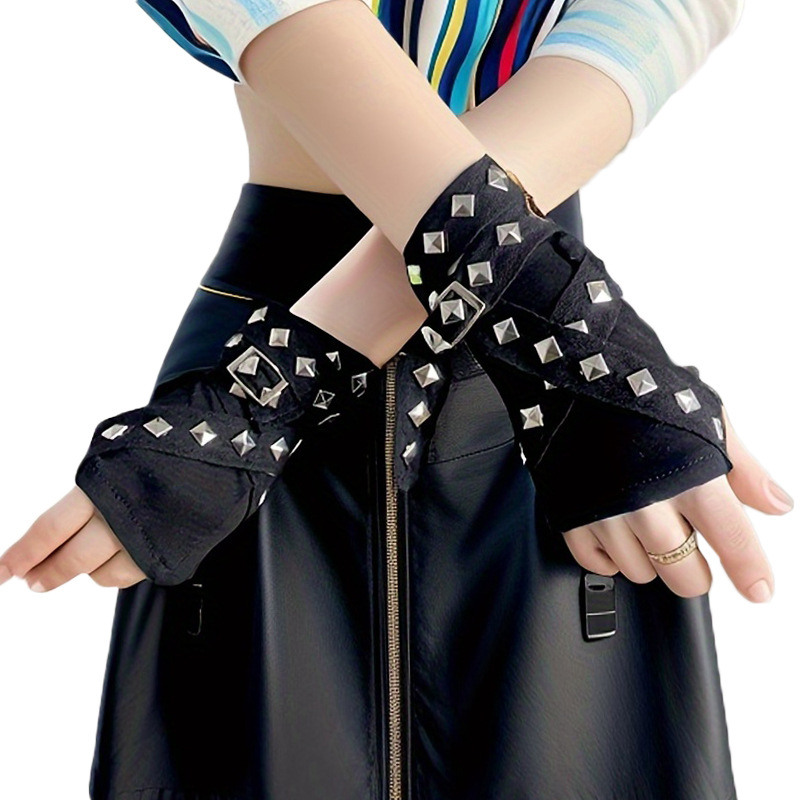 펑크 스타일 장갑 검은 반 손가락 손 소매 오토바이 스타일 리벳 짧은 중립 다크 스타일 틈새 공연 재고스토어 가기