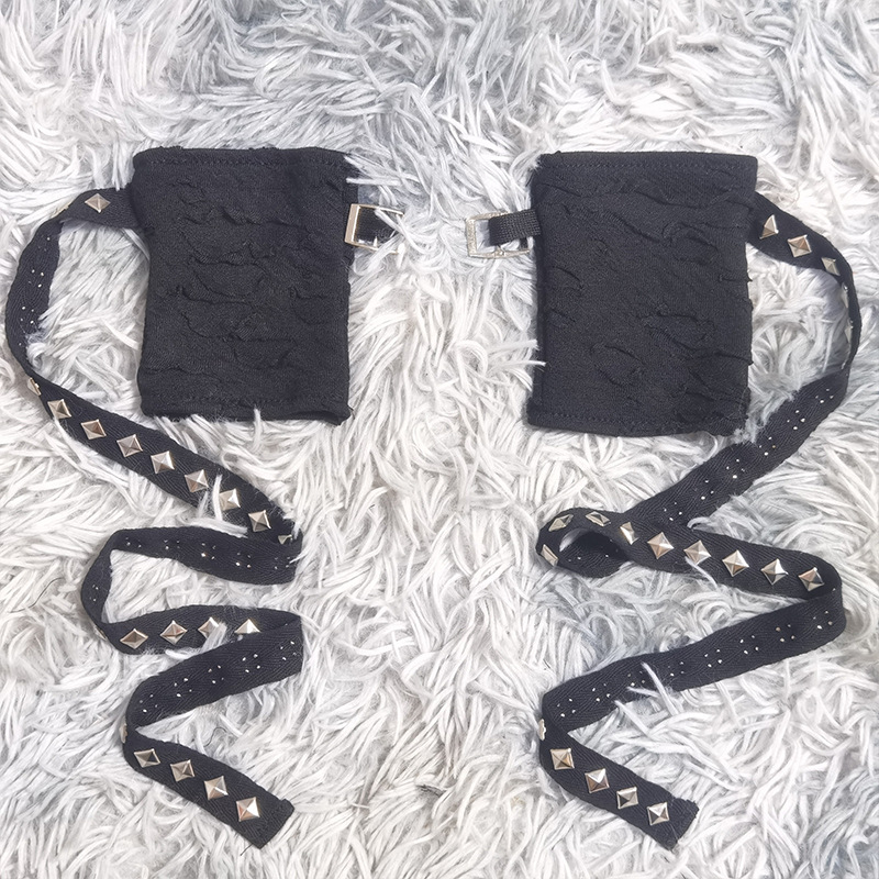 펑크 스타일 장갑 검은 반 손가락 손 소매 오토바이 스타일 리벳 짧은 중립 다크 스타일 틈새 공연 재고