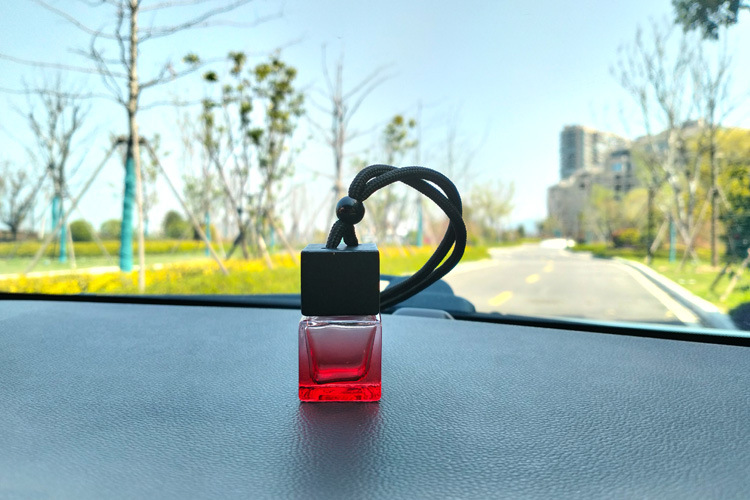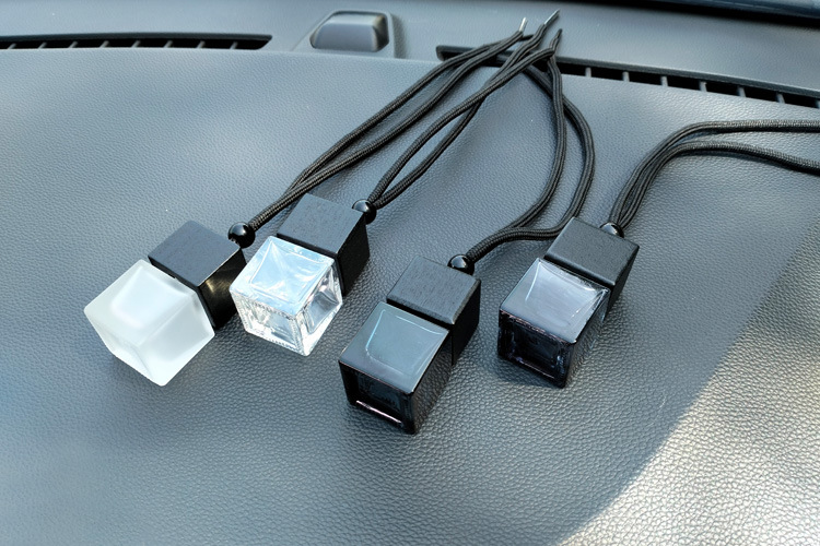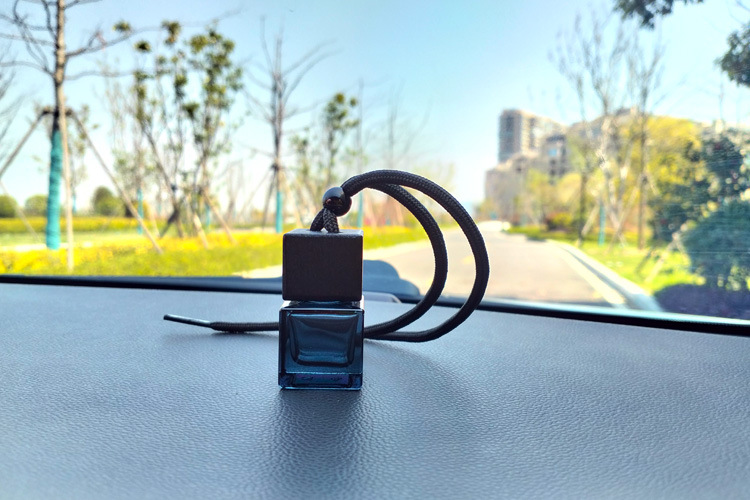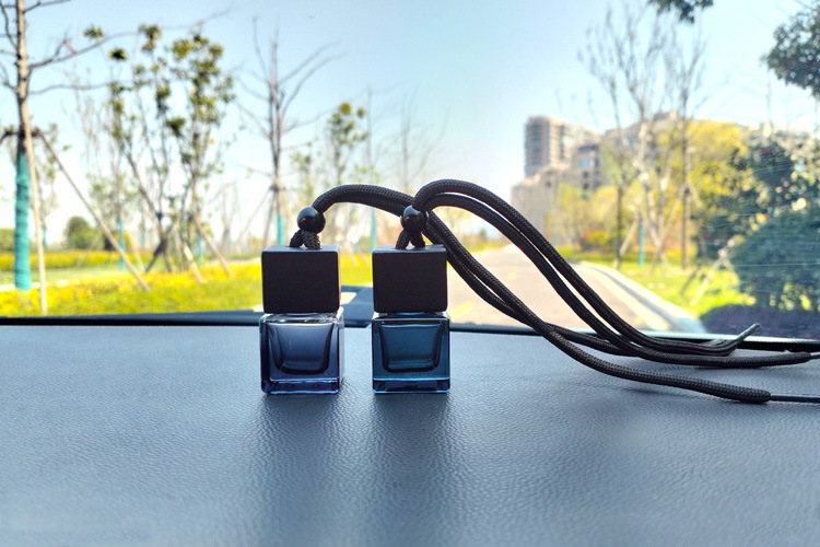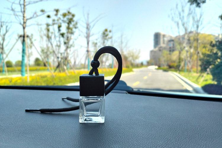 블랙 뚜껑 자동차 향수 빈 병 펜던트 스퀘어 유리 에센셜 오일 아로마 테라피 병 자동차 교수형 자동차 액세서리