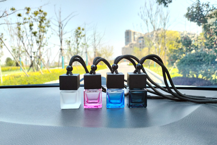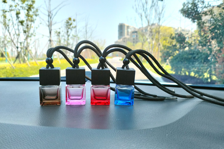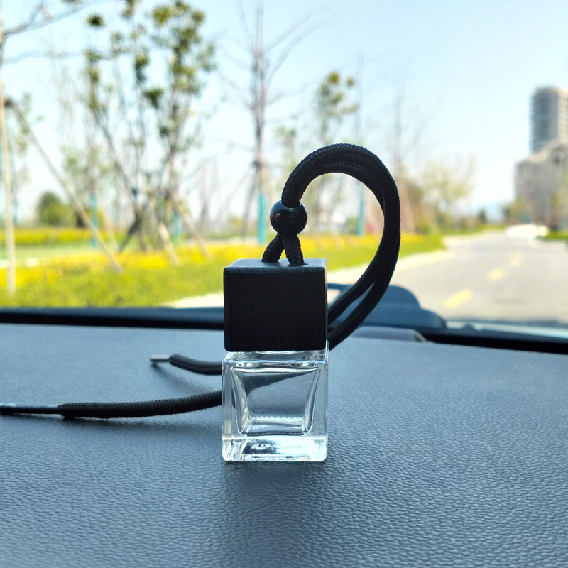 블랙 뚜껑 자동차 향수 빈 병 펜던트 스퀘어 유리 에센셜 오일 아로마 테라피 병 자동차 교수형 자동차 액세서리스토어 가기