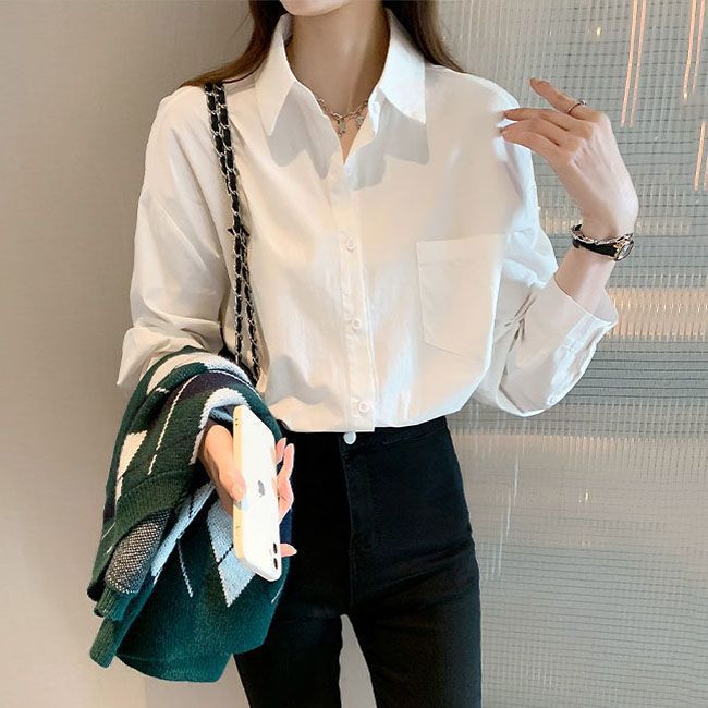 흰색 셔츠 티셔츠 여성 JK 유니폼 봄 여름 신상 중간 길이 캐주얼 긴팔 셔츠 자외선 차단 탑 얇은스토어 가기