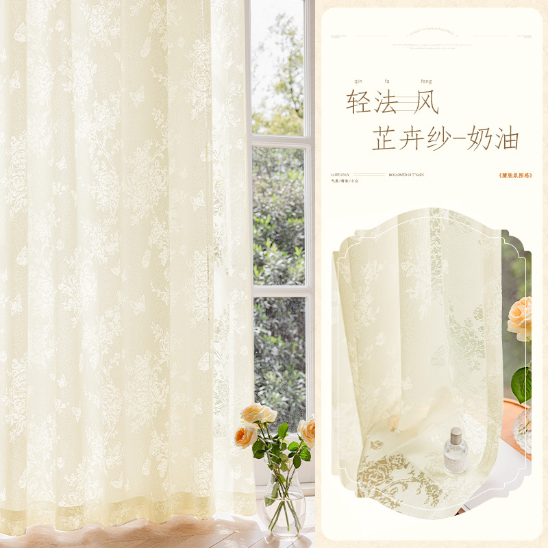 문 브랜치 그림자 거즈 커튼 프랑스 중공 스크린 2025 새로운 침실 발코니 고급 부각성 거즈 커튼