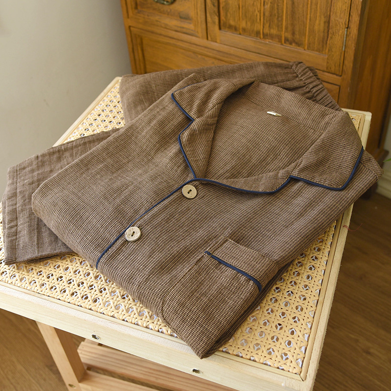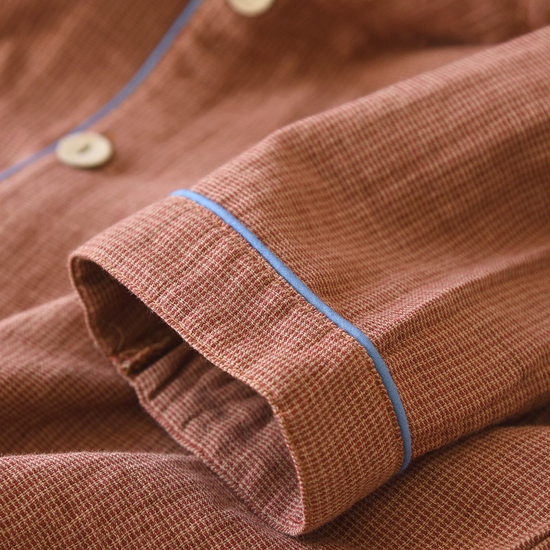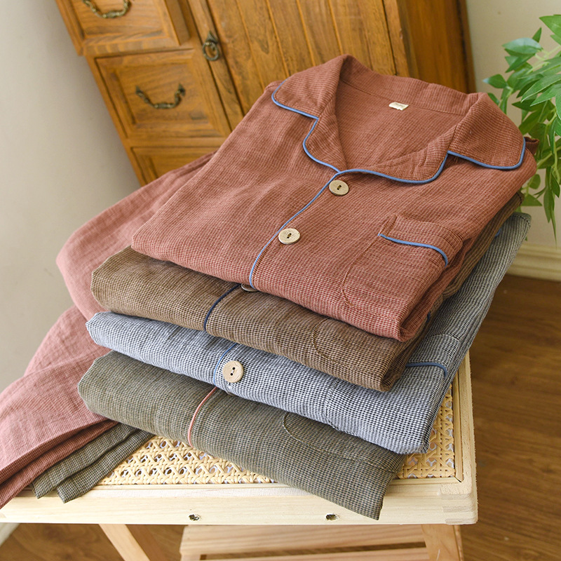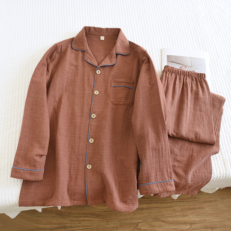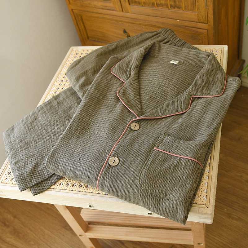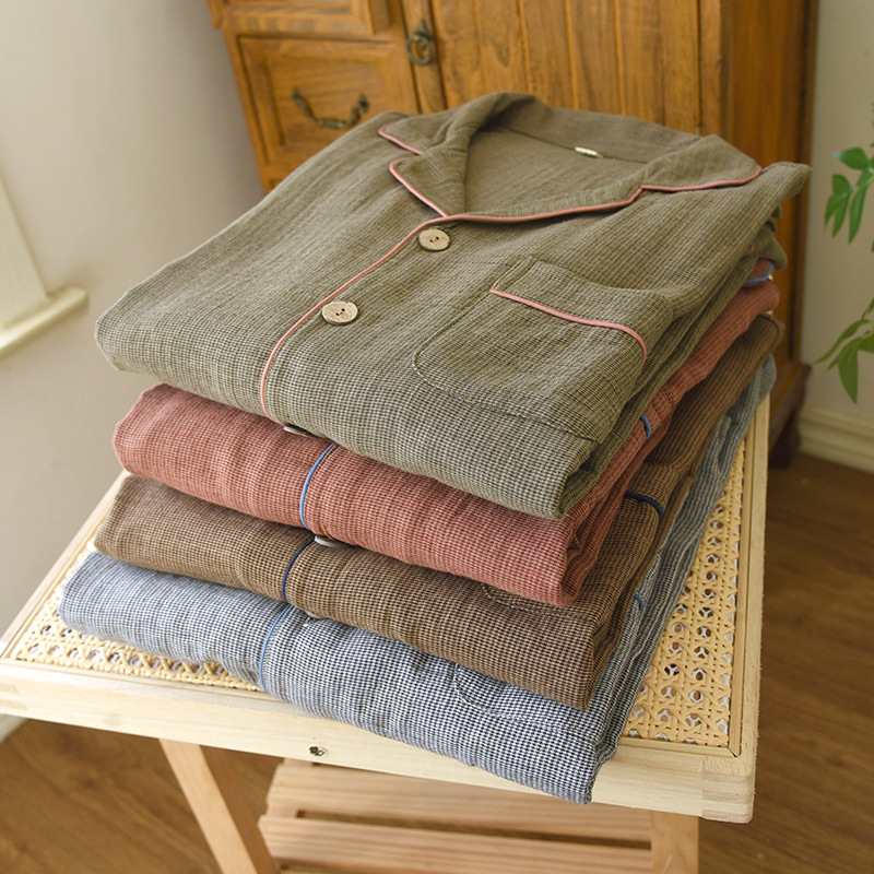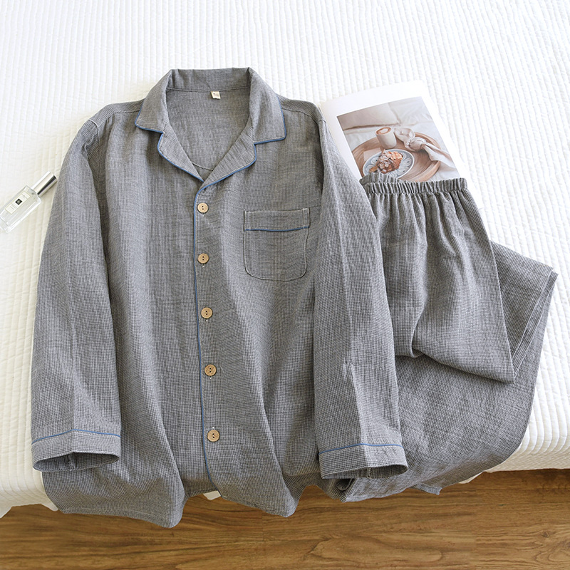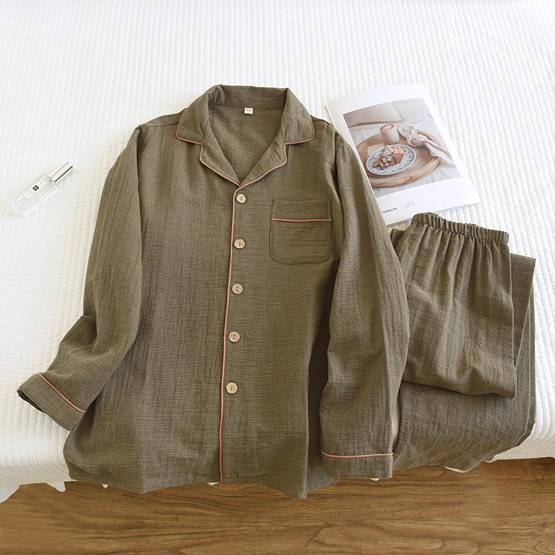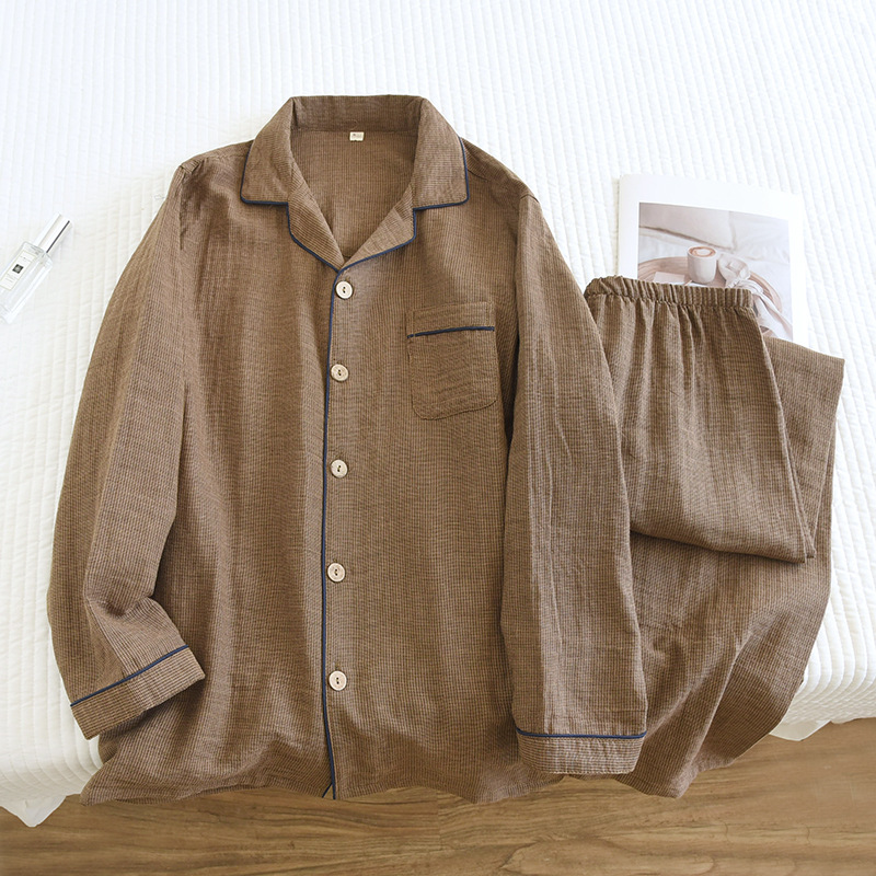 새로운 남성용 면 더블 레이어 원사 긴 소매 바지 세트 홈 의류 파자마 느슨한 플러스 사이즈 얇은 캐주얼 단순스토어 가기