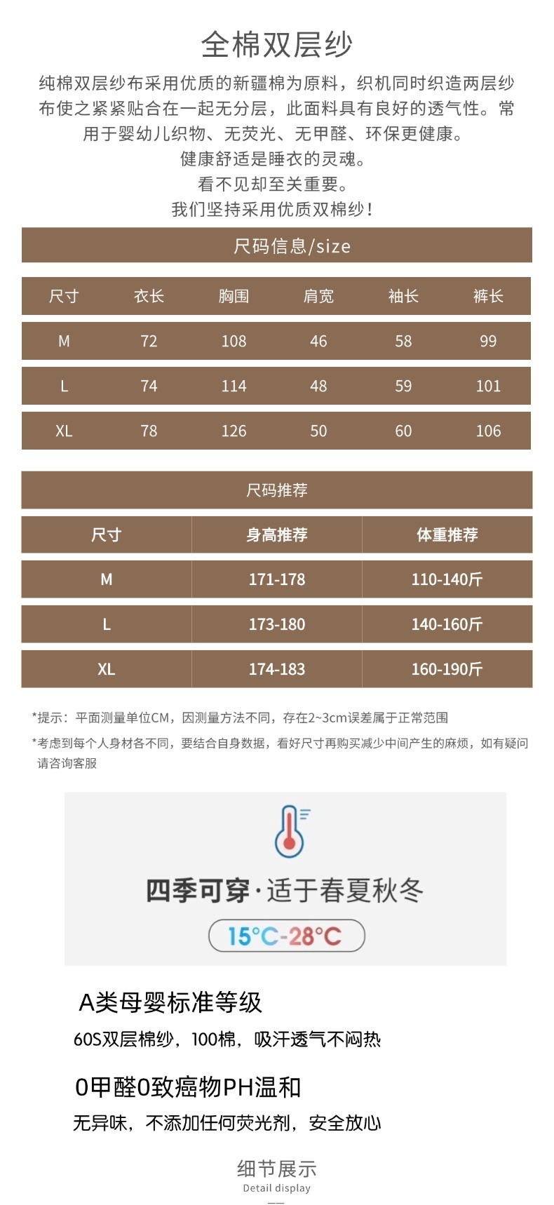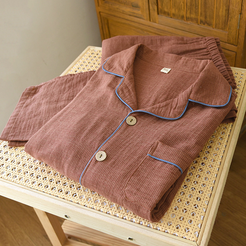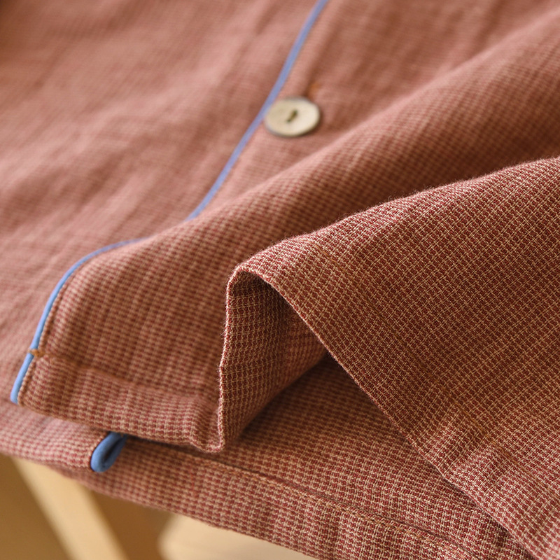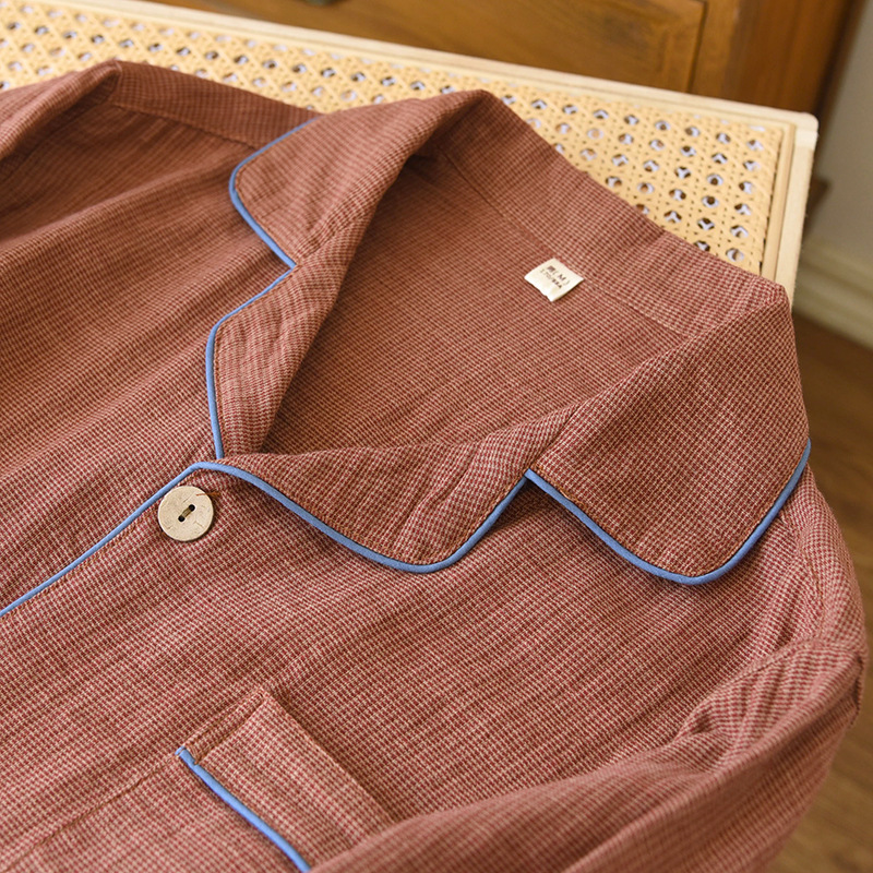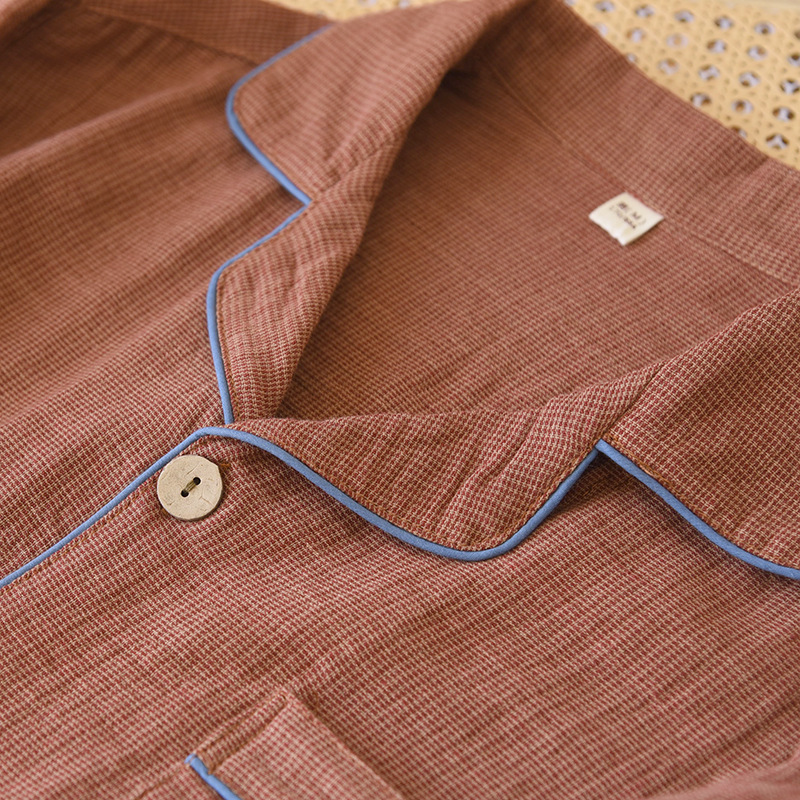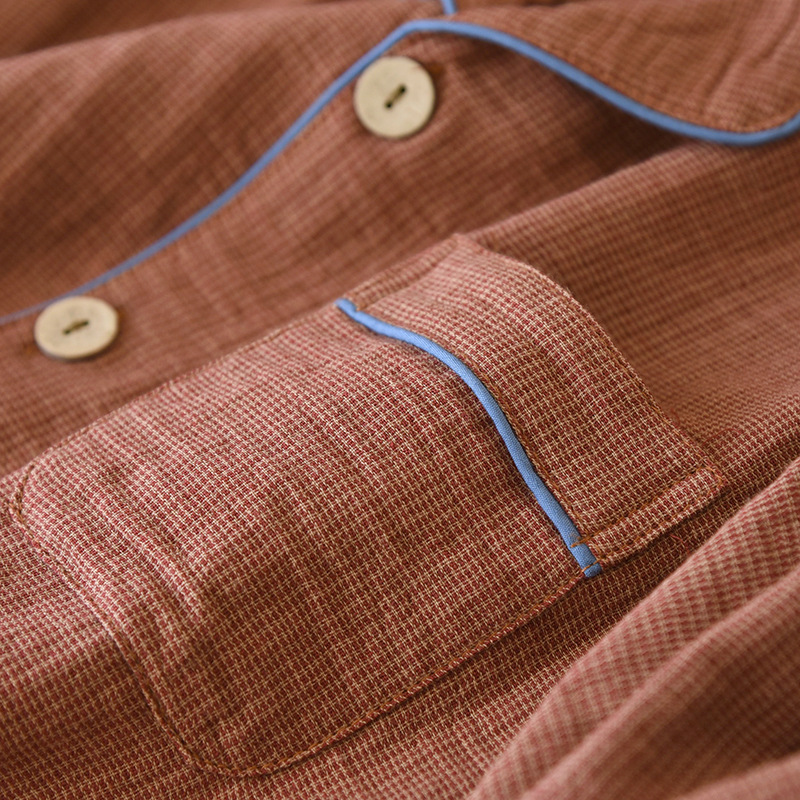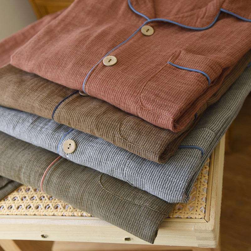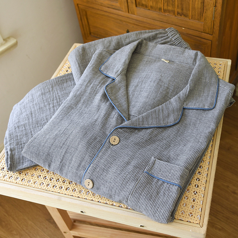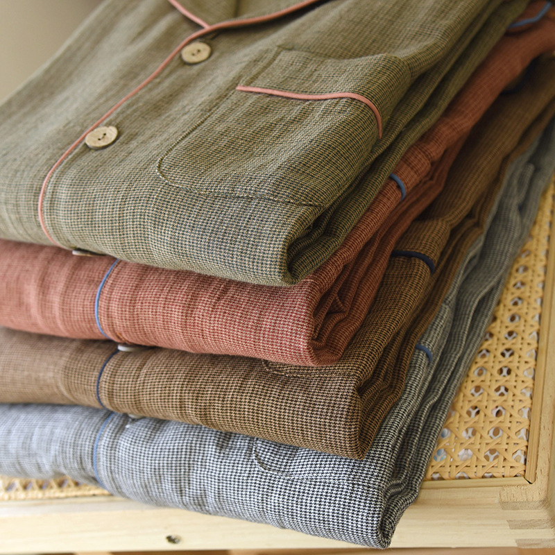 새로운 남성용 면 더블 레이어 원사 긴 소매 바지 세트 홈 의류 파자마 느슨한 플러스 사이즈 얇은 캐주얼 단순스토어 가기