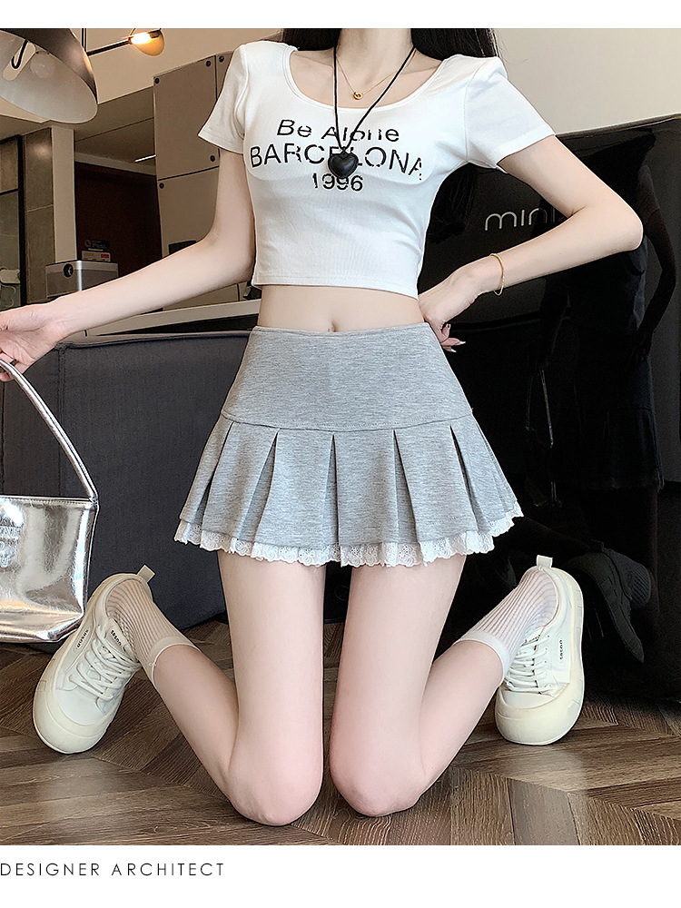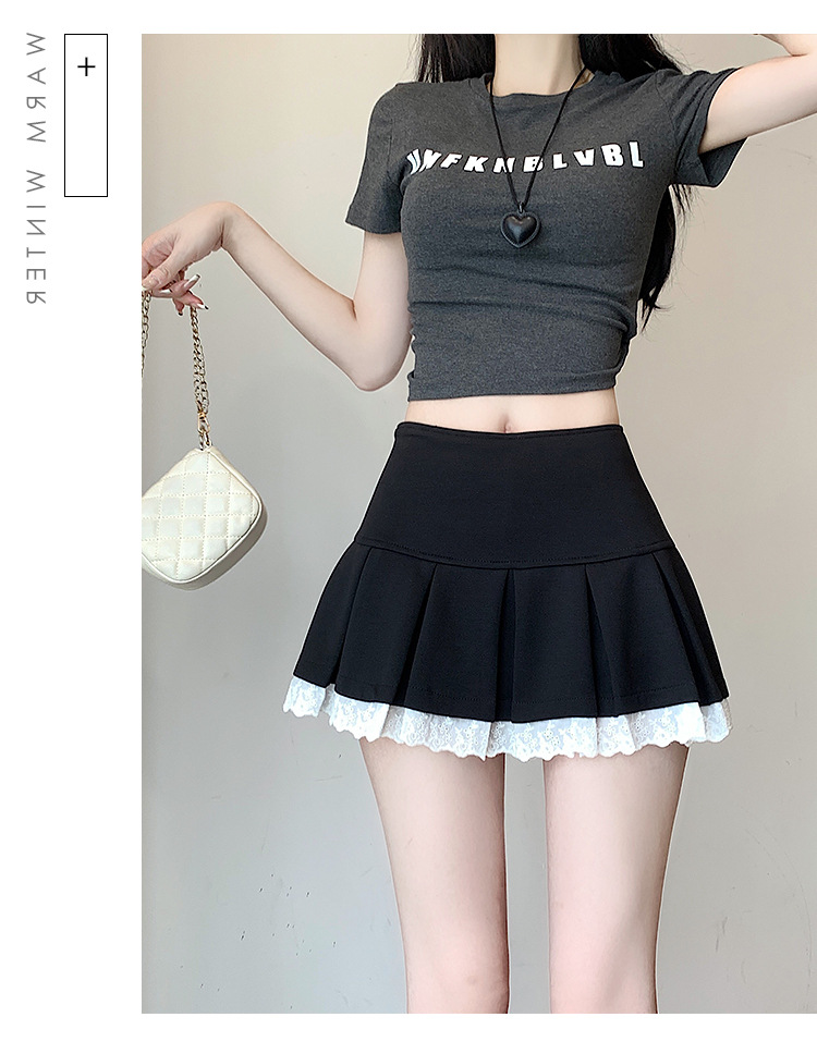 핫걸 플리츠 레이스 스커트, 봄 여름 소녀 스포티 하이웨이스트, 다용도, 나이를 줄여주고 키와 몸매를 더해주는 여성용 힙허깅 스커트