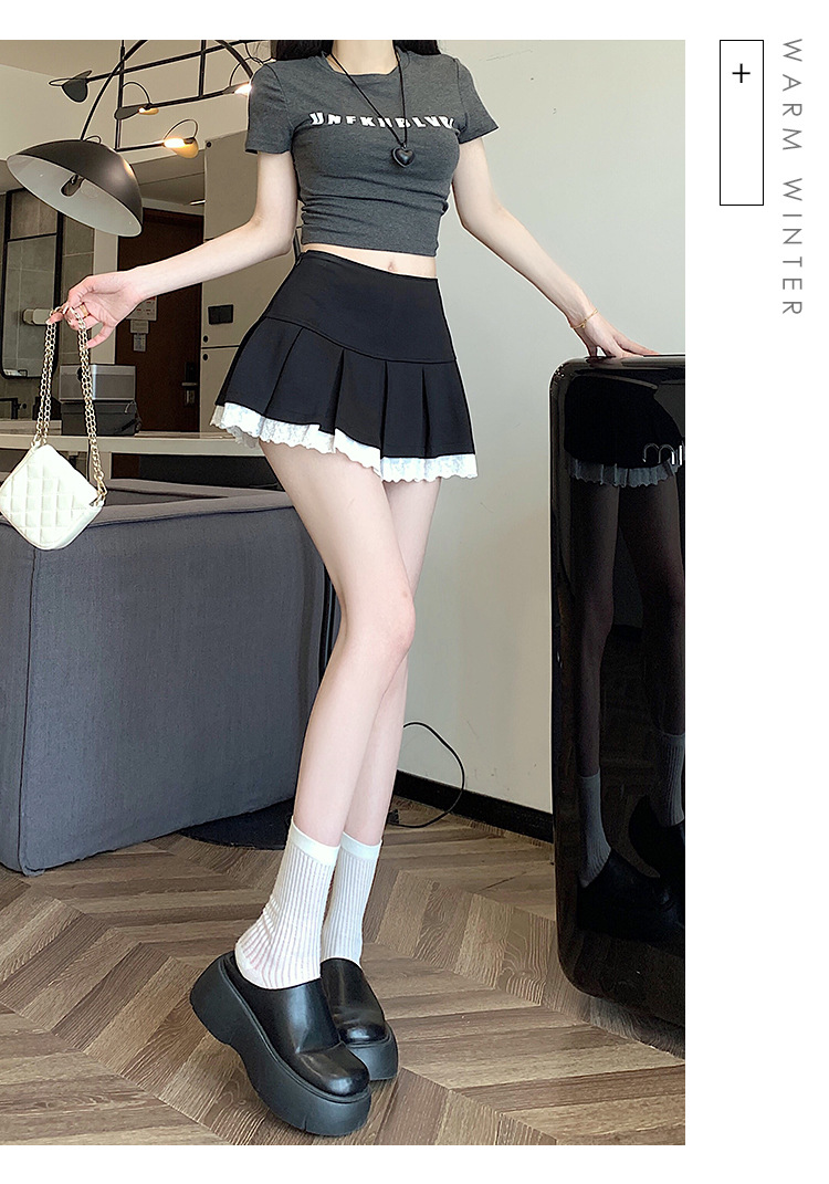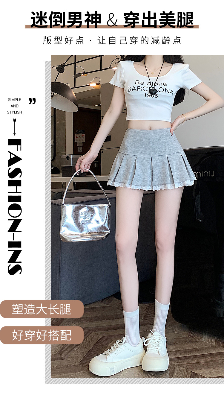 핫걸 플리츠 레이스 스커트, 봄 여름 소녀 스포티 하이웨이스트, 다용도, 나이를 줄여주고 키와 몸매를 더해주는 여성용 힙허깅 스커트스토어 가기