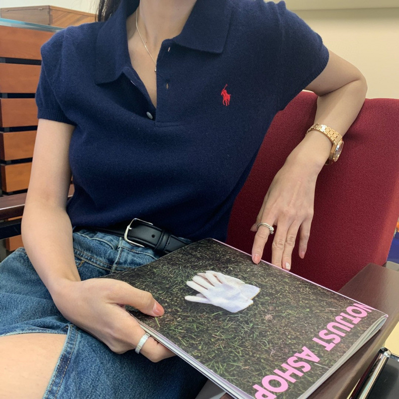 2025 가을과 겨울 새로운 도착 랄프 포니 자수 슬림 니트 폴로 셔츠 짧은 여자 톱 스웨터스토어 가기