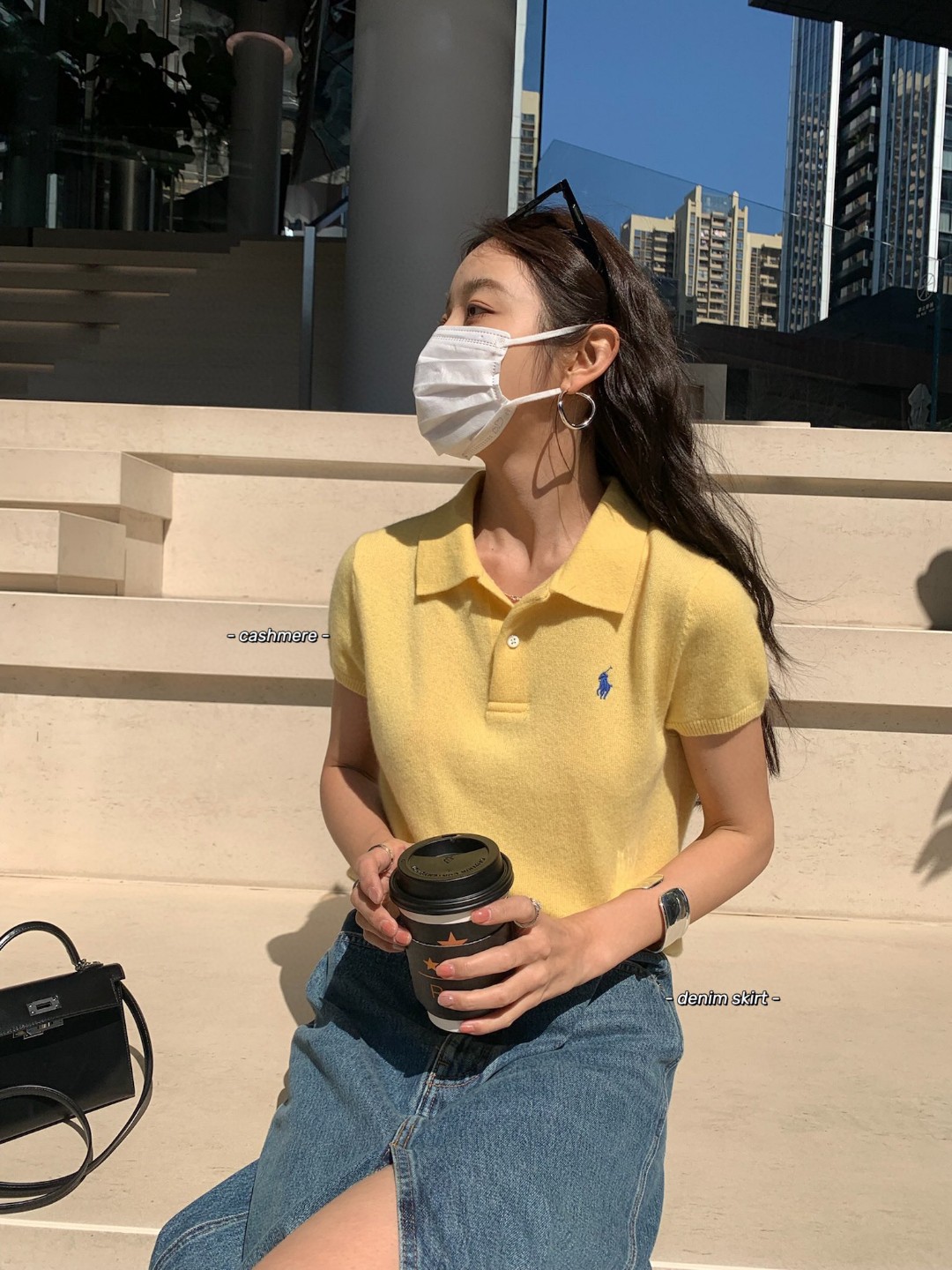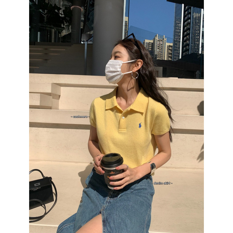 2025 가을과 겨울 새로운 도착 랄프 포니 자수 슬림 니트 폴로 셔츠 짧은 여자 톱 스웨터