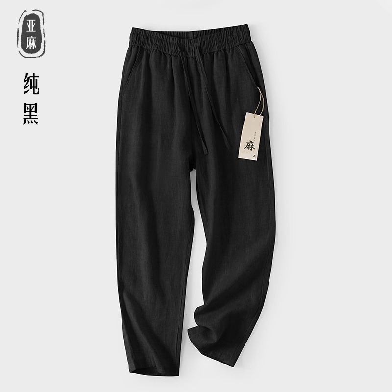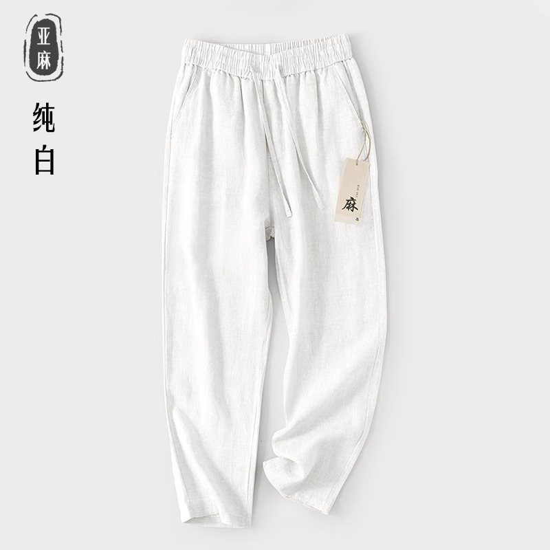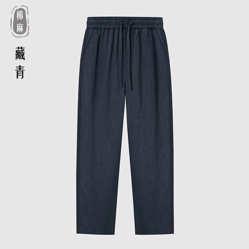 새로운 중국 스타일 리넨 바지 남성용 여름 얇은 편안한 통기성 직선 바지 느슨한 코튼 리넨 바지 플러스 사이즈