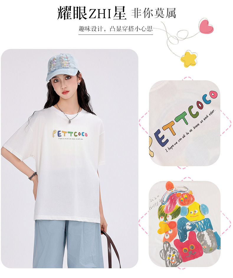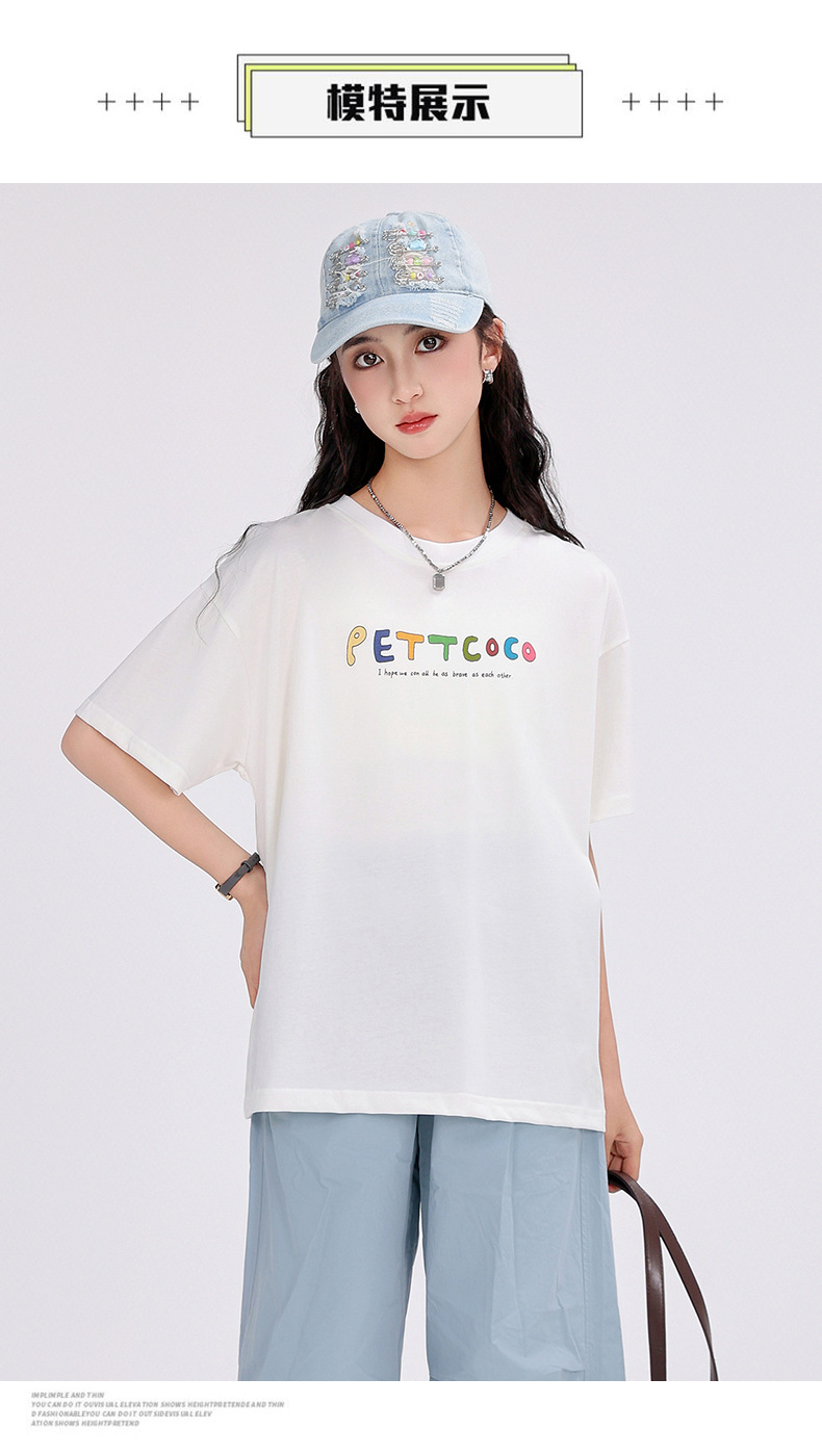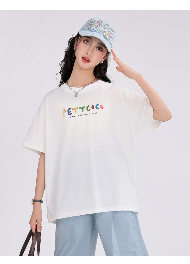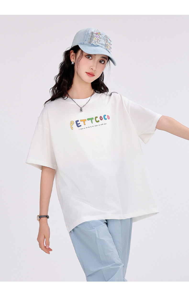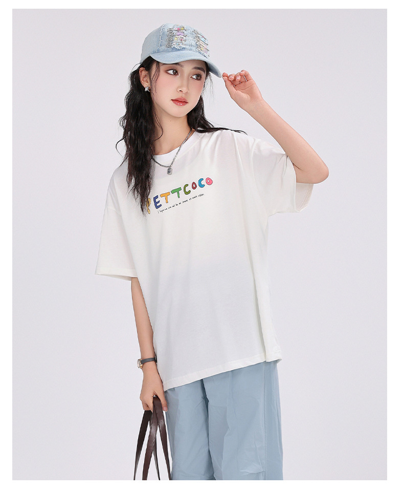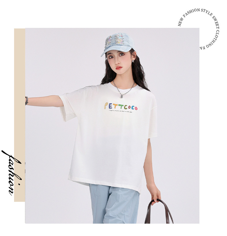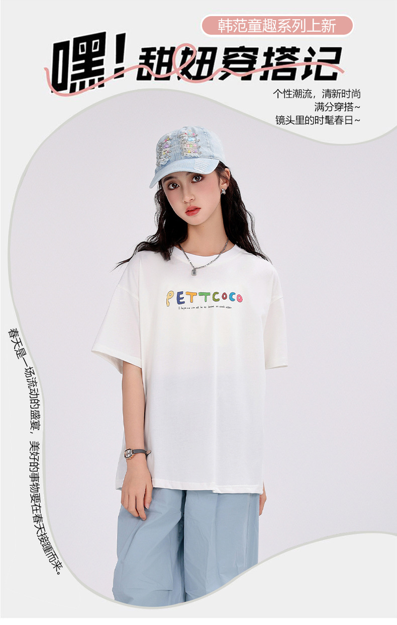 중학생 여학생 반팔 2025 여름 새 여학생 티셔츠 플러스 사이즈 캐주얼 티셔츠 루즈 화이트스토어 가기