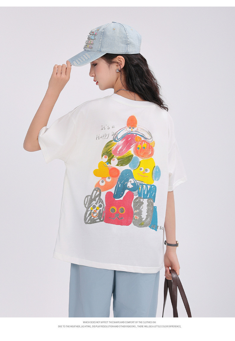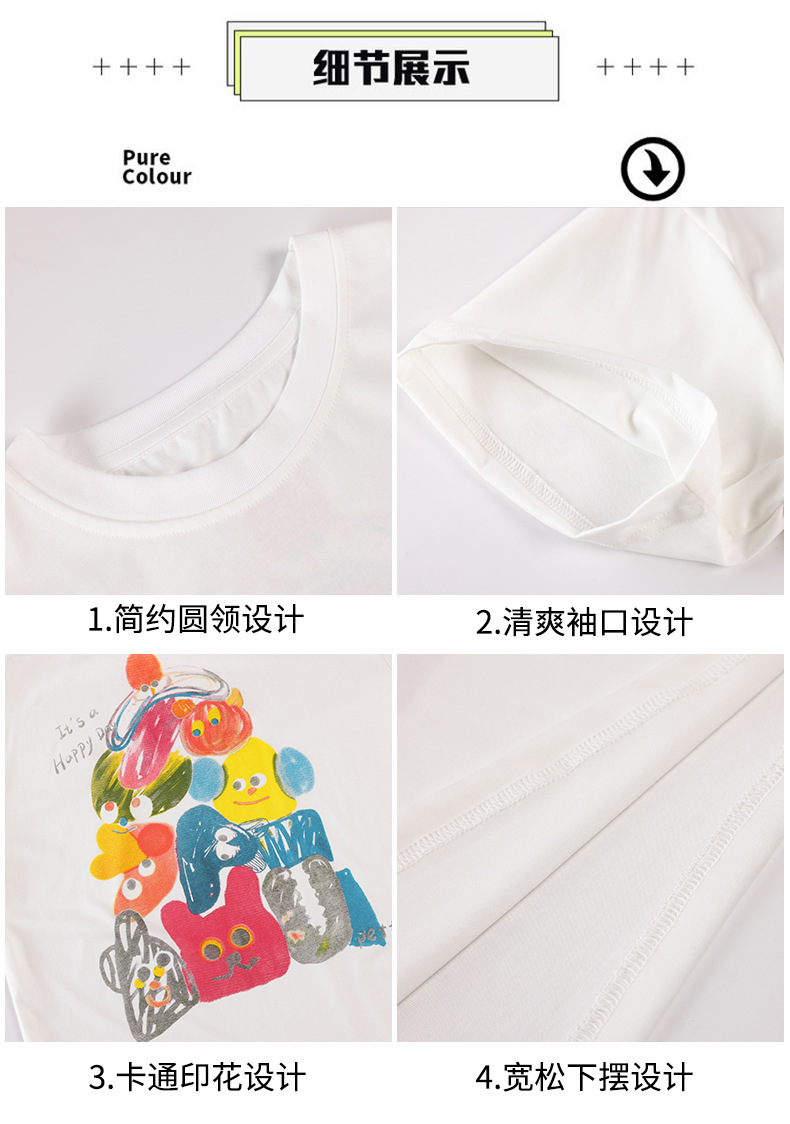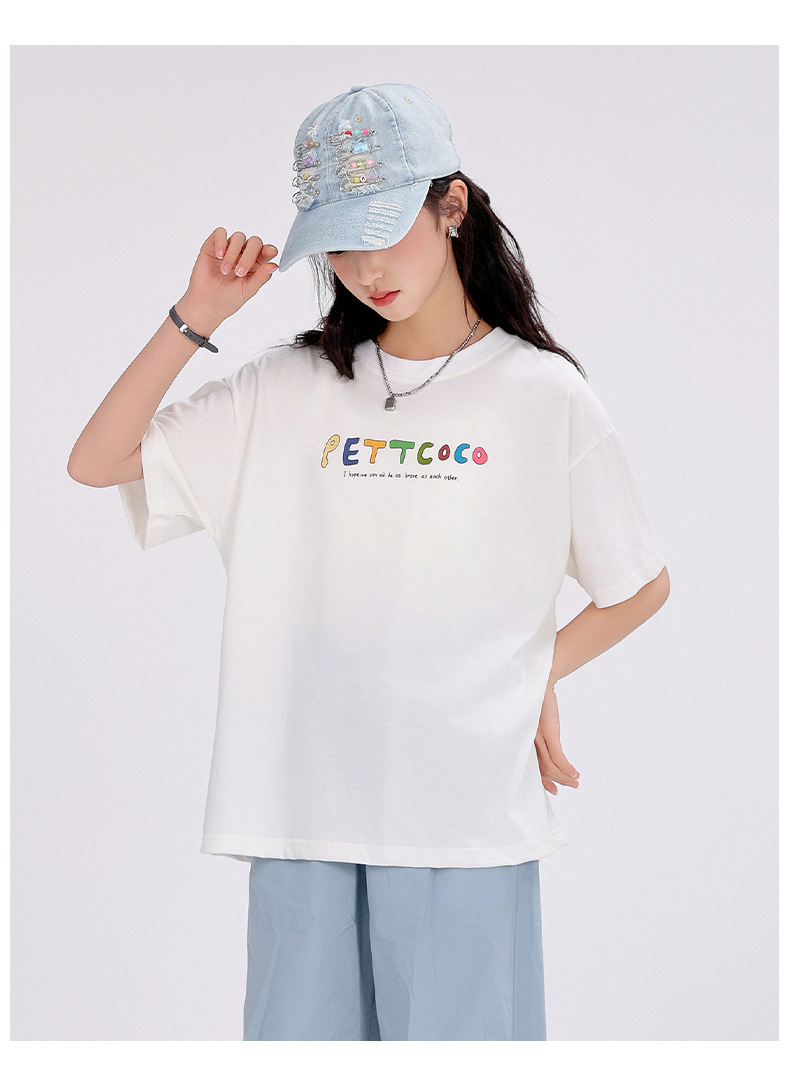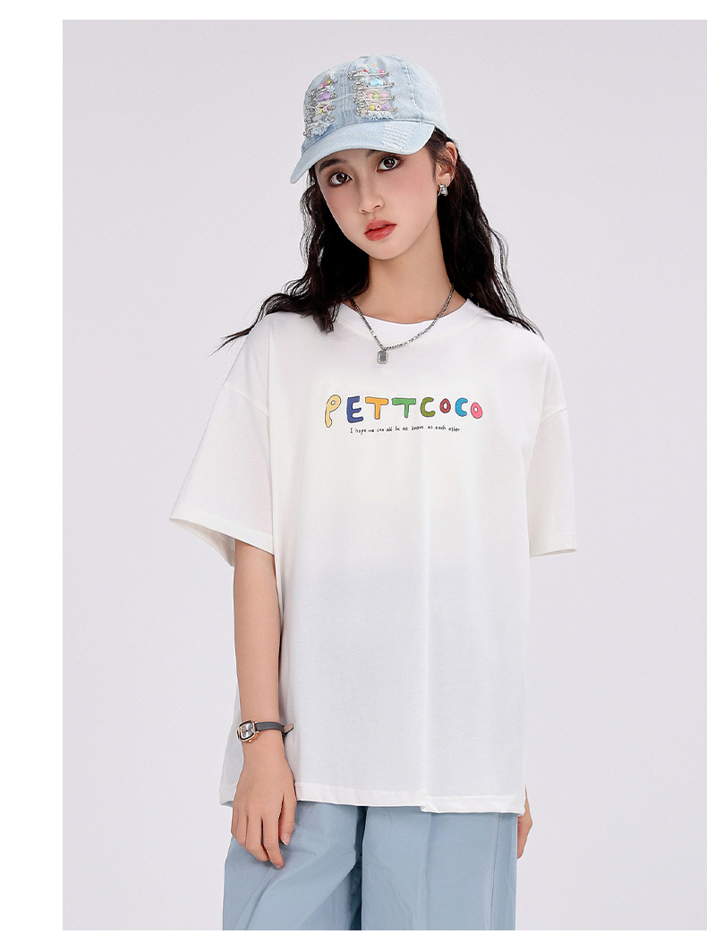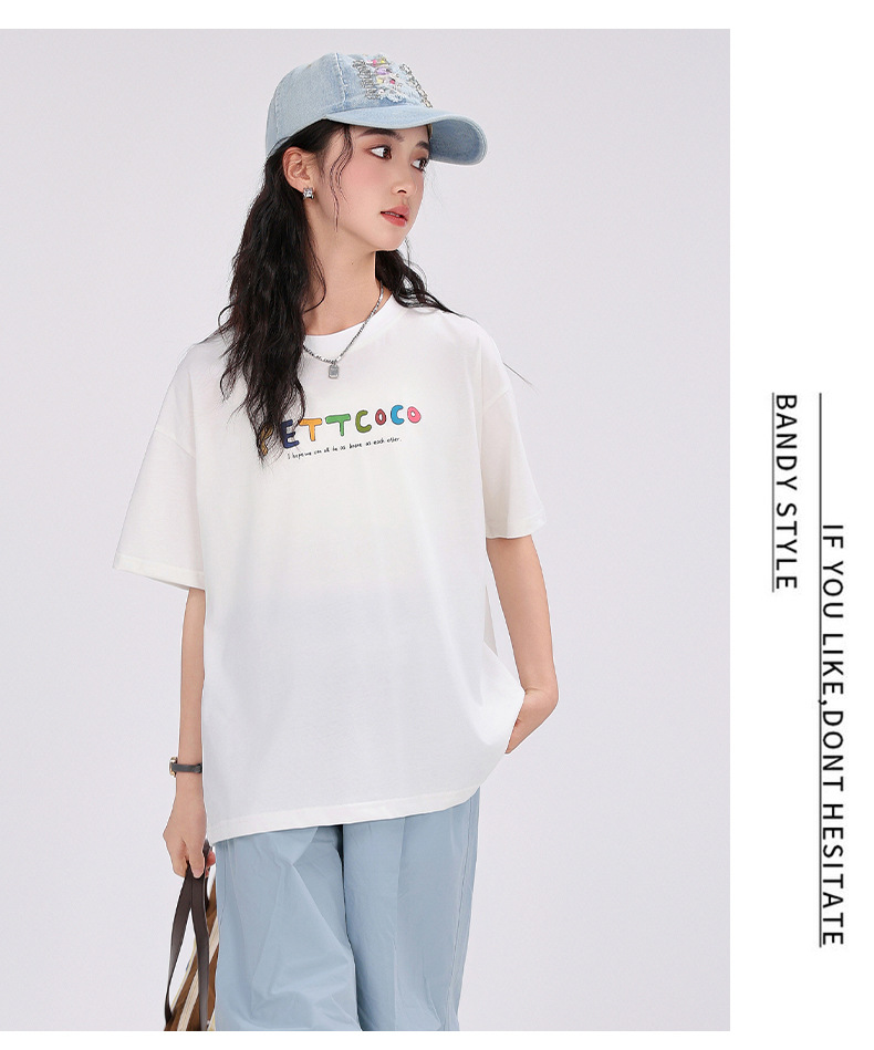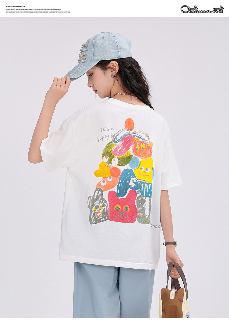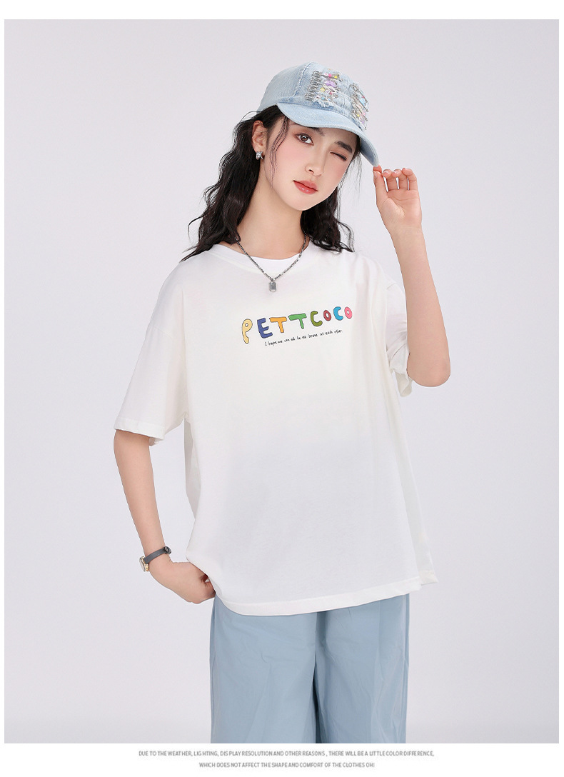 중학생 여학생 반팔 2025 여름 새 여학생 티셔츠 플러스 사이즈 캐주얼 티셔츠 루즈 화이트스토어 가기