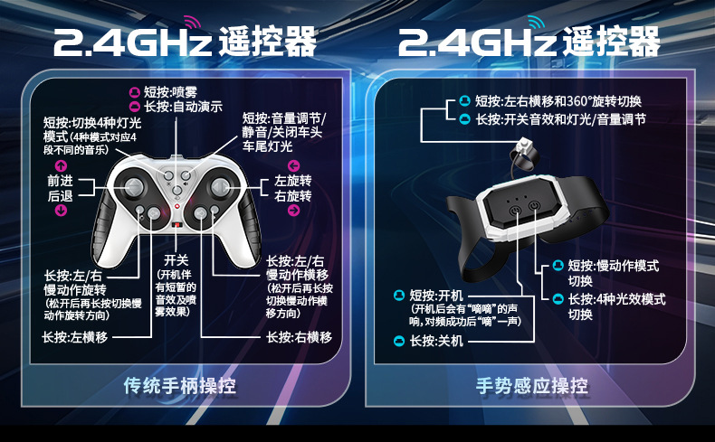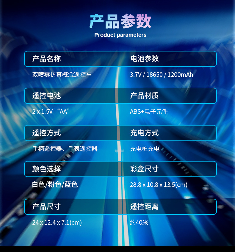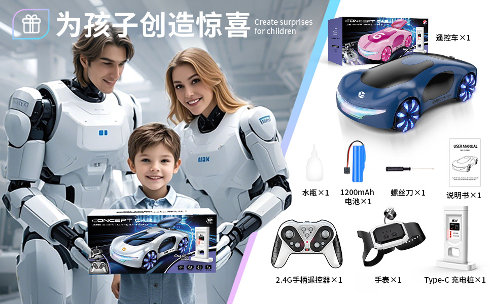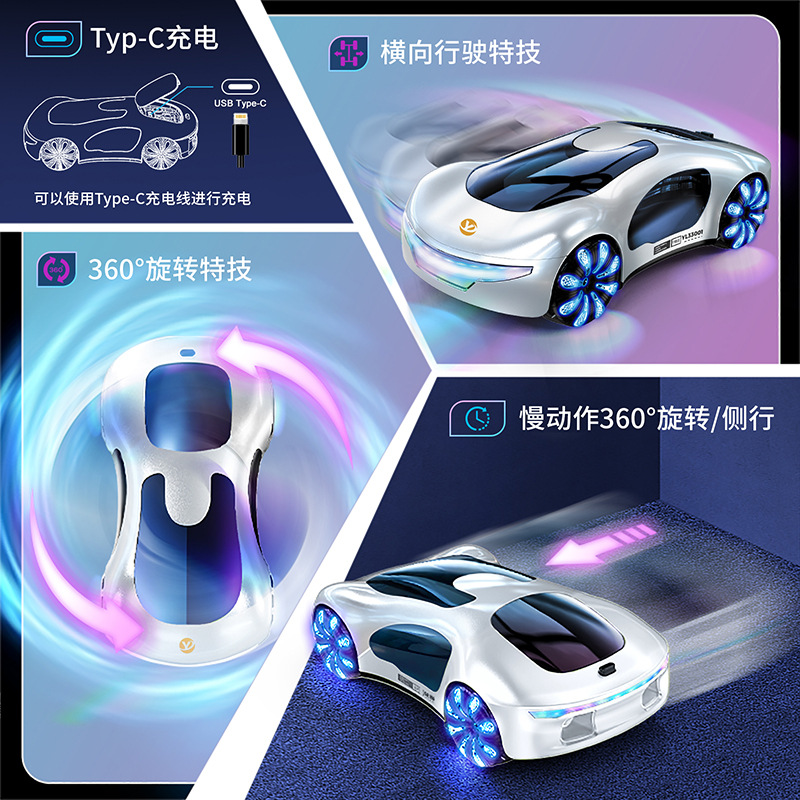 국경을 넘는 도파민 파우더 EV 신에너지 컨셉 원격 조종 자동차, 러닝라이트, 스프레이, 제스처 센서, 어린이 장난감 선물 세트