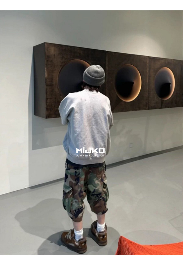 MIJKO 남성복 여성의 봄과 여름 새로운 캐주얼 바지 유행 남녀 M65 프로필 위장화물 자른 반바지스토어 가기