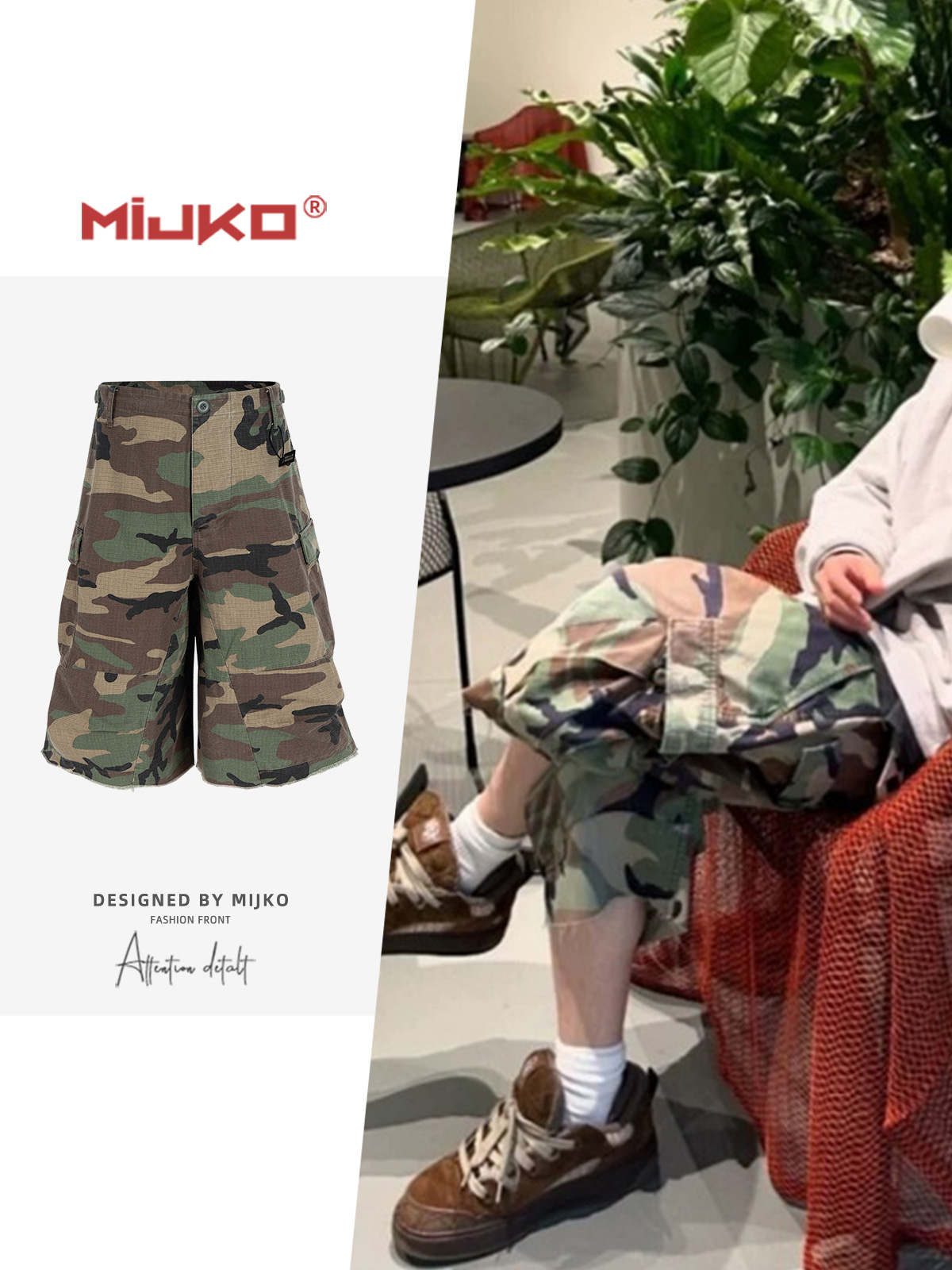 MIJKO 남성복 여성의 봄과 여름 새로운 캐주얼 바지 유행 남녀 M65 프로필 위장화물 자른 반바지