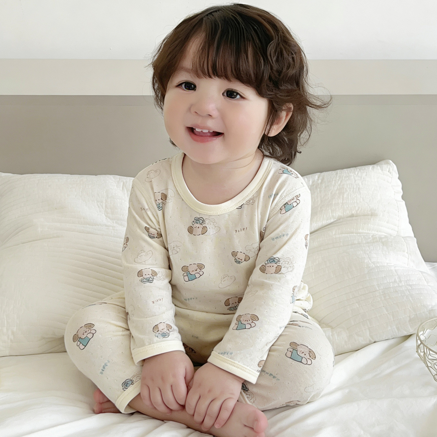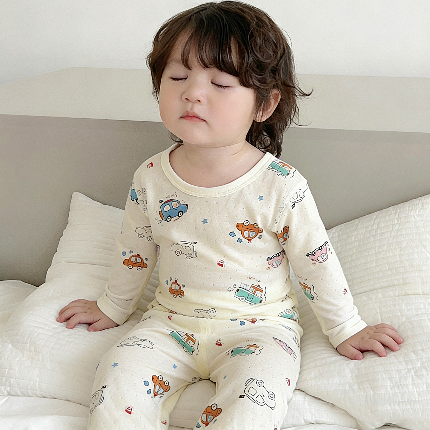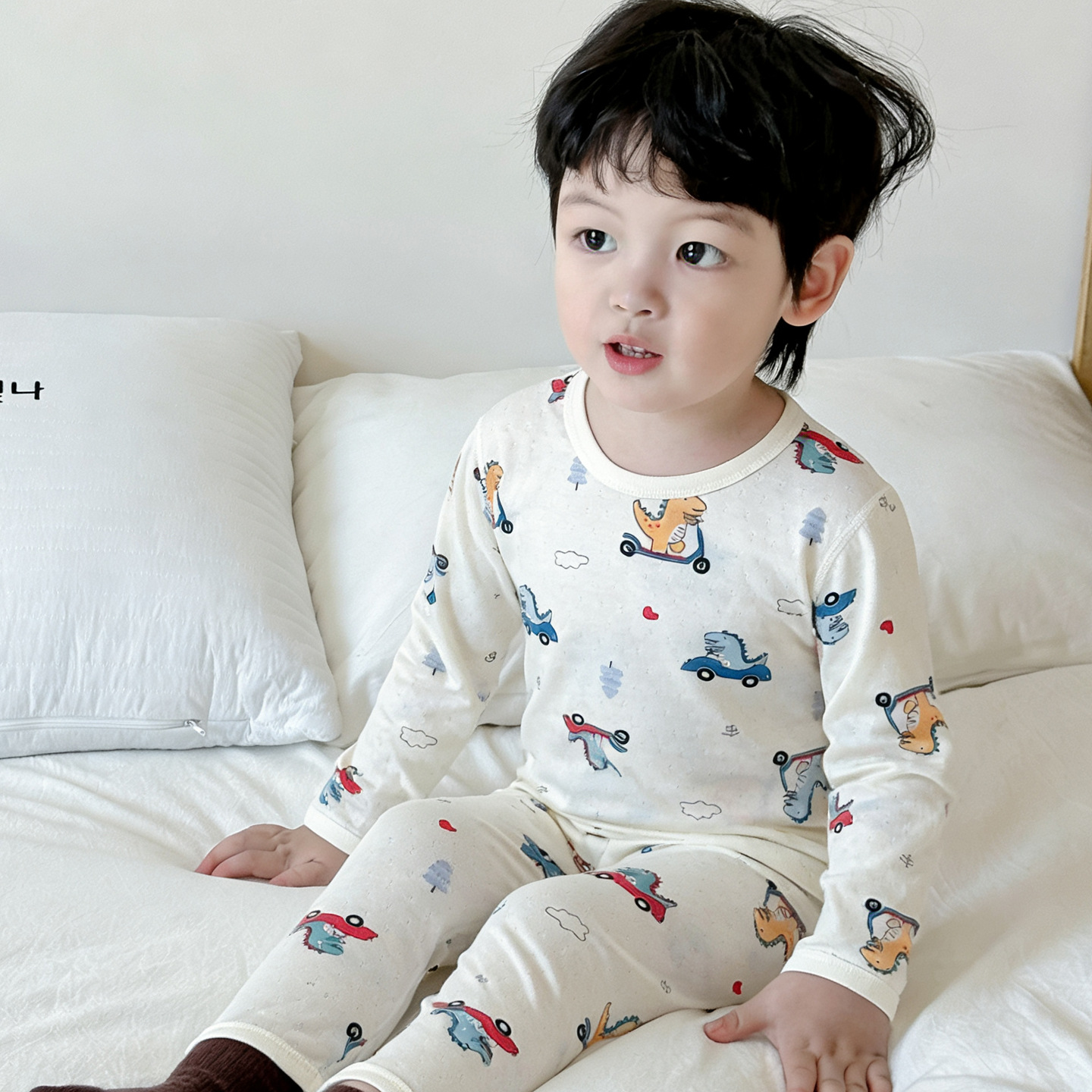 봄과 가을 어린이 홈 의류 세트 순수한면 얇은 호흡 긴 소매 속옷 소년 소녀 뼈없는 아기 잠옷