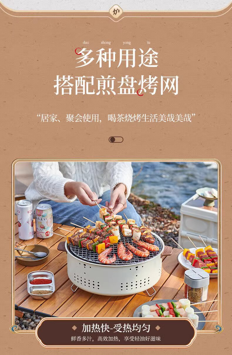 피크닉 다기능 소형 휴대용 탄소 구이 차 스토브 엔서클 스토브 요리 야외 캠핑 바베큐 스토브 숯 스토브 세트스토어 가기