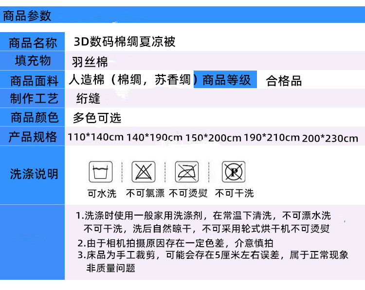 새로운 3D 디지털 면 실크 여름 쿨 퀼트 싱글 어린이 유치원 기계 세탁 가능한 여름 낮잠 인공 면 에어컨 퀼트스토어 가기