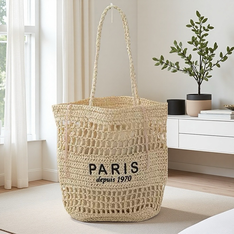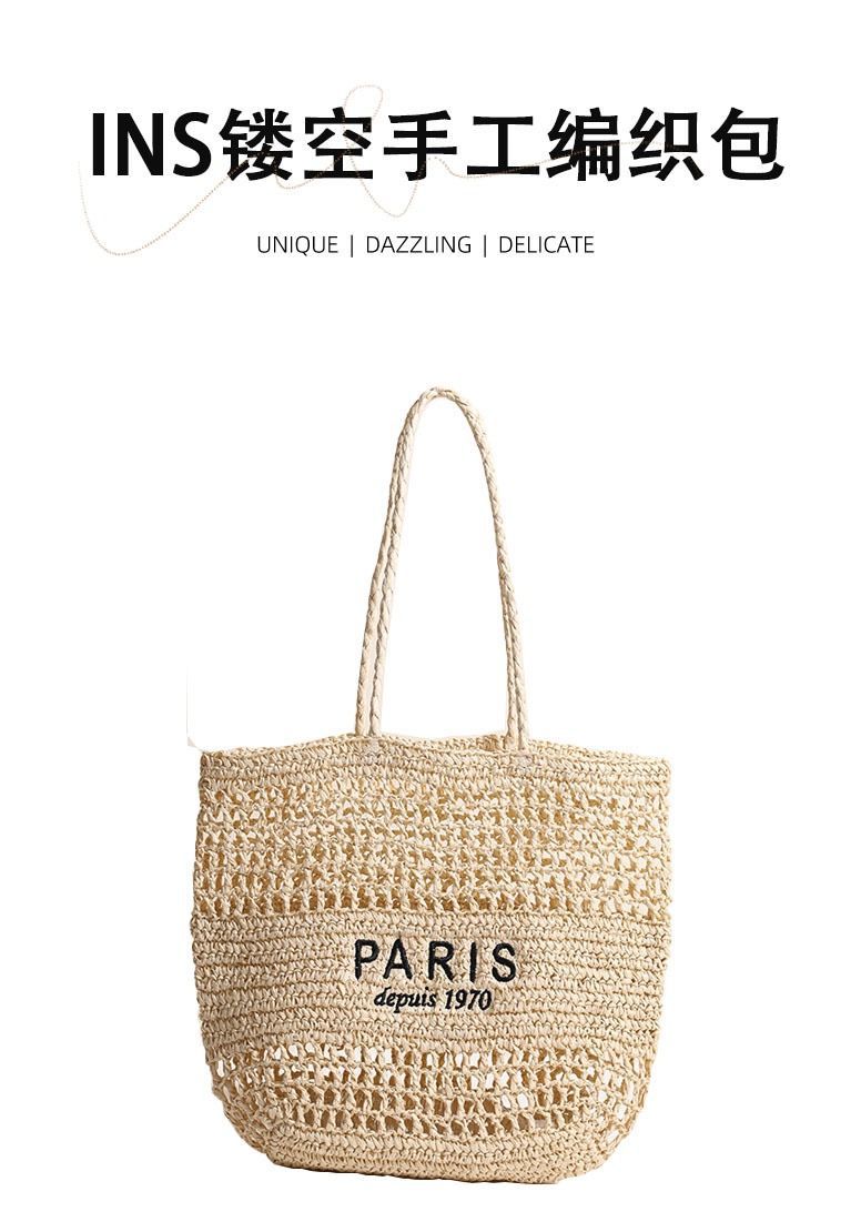 새 편지 자수 올 매치 짠 가방 어깨 밀짚 짠 가방 해변 짠 가방 휴일 스타일 비치 백스토어 가기