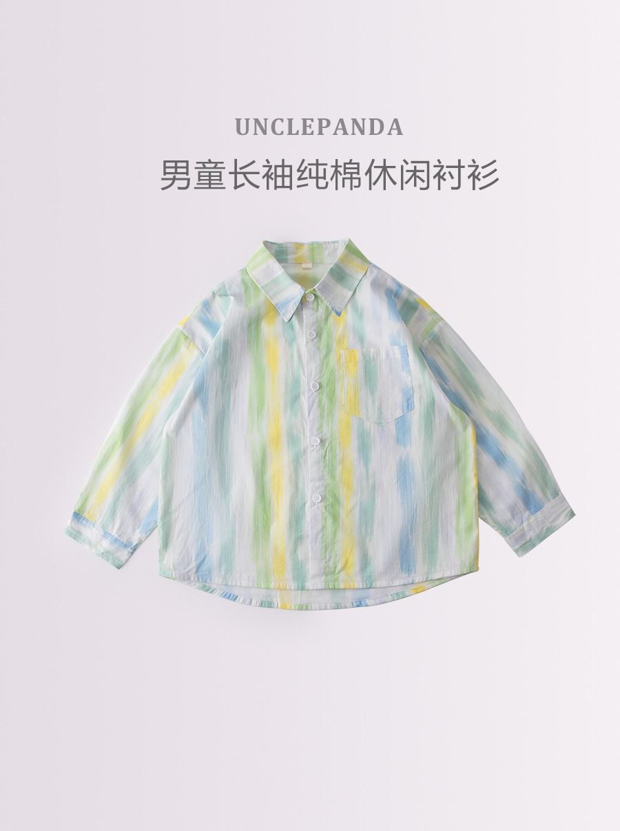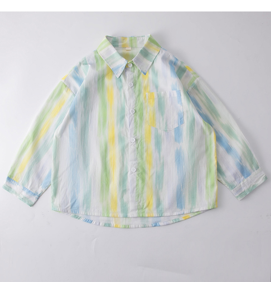 작은 신선한 탑 라펠 순면 아동 복고풍 유행 새로운 스타일 남성 긴팔 셔츠 중대형 아동 캐주얼 루즈 셔츠스토어 가기