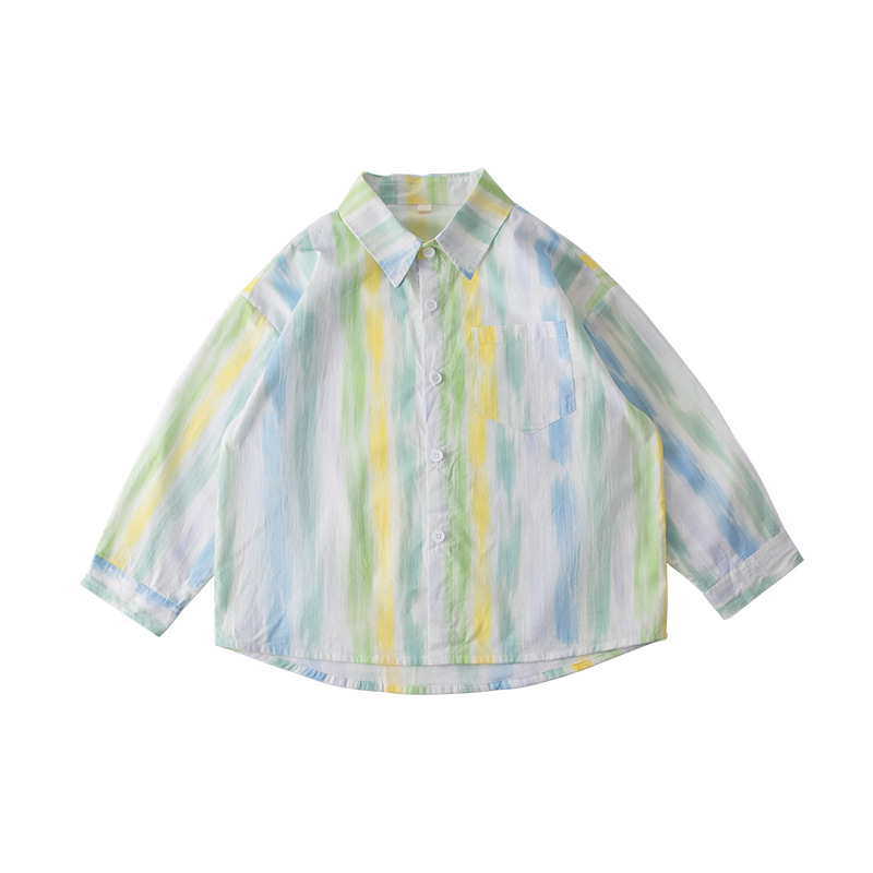 작은 신선한 탑 라펠 순면 아동 복고풍 유행 새로운 스타일 남성 긴팔 셔츠 중대형 아동 캐주얼 루즈 셔츠