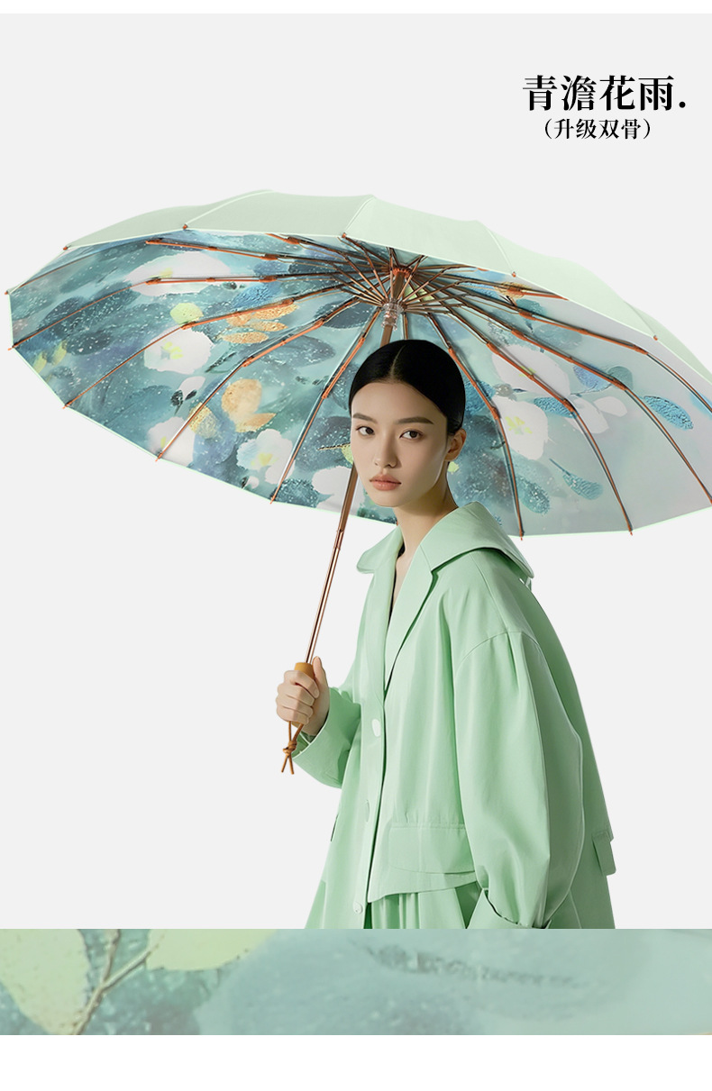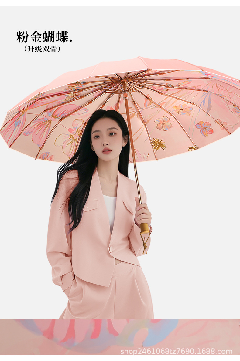컬러 접착제 16 뼈 초대형 골드로드 선 스크린 우산 슈퍼 UV 보호 써니 우산 피부