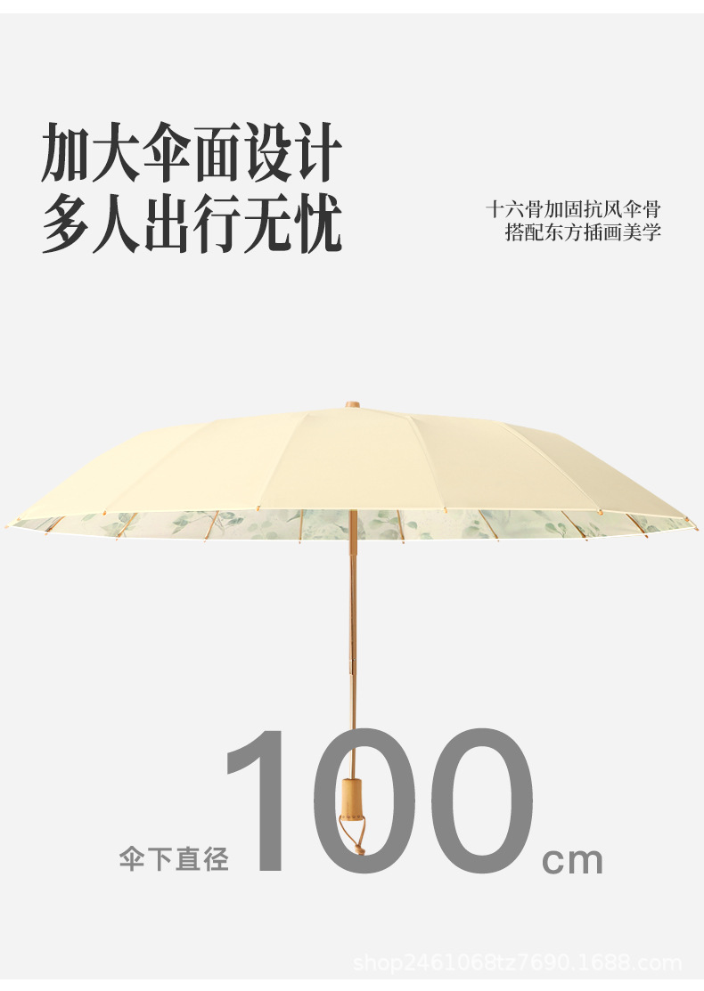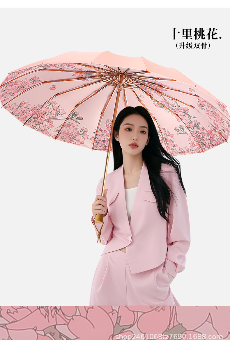 컬러 접착제 16 뼈 초대형 골드로드 선 스크린 우산 슈퍼 UV 보호 써니 우산 피부스토어 가기
